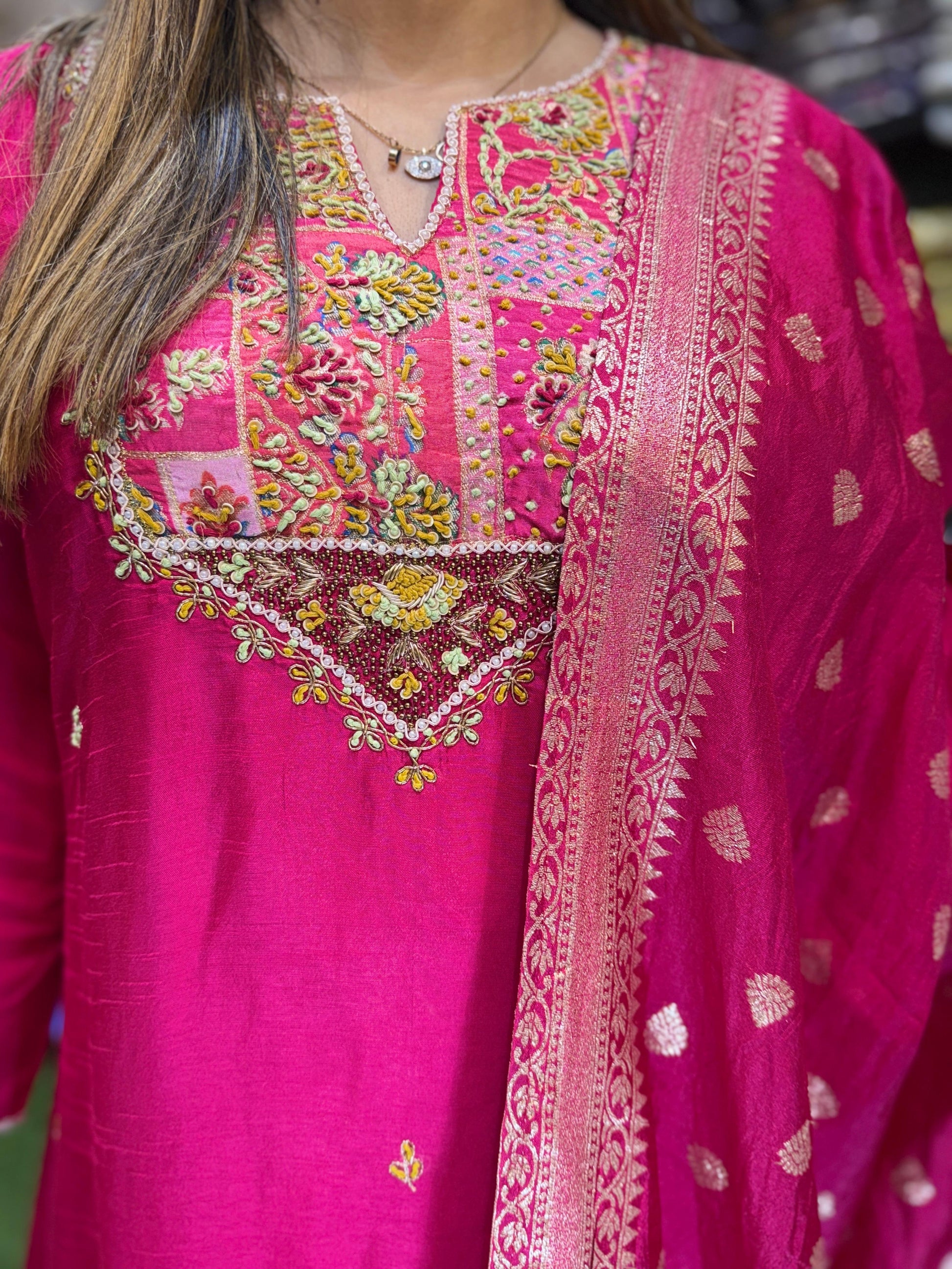 | DISCLAIMER | Culkatta Hand Work Pink Color |
