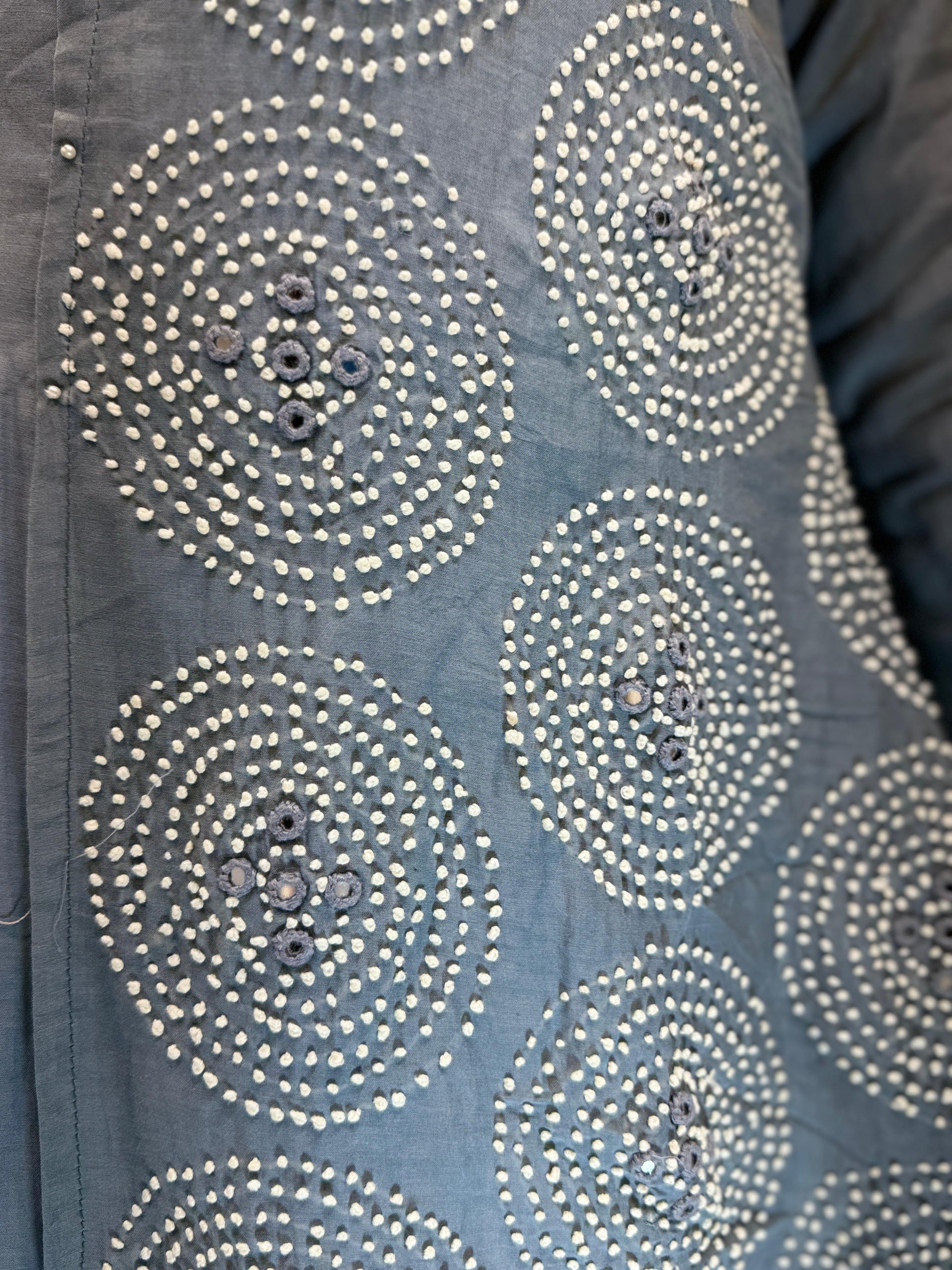 Pure Mull Cotton A- Line 3 pc Suit With Premium Embroidery Work in Pastel or sky blue color