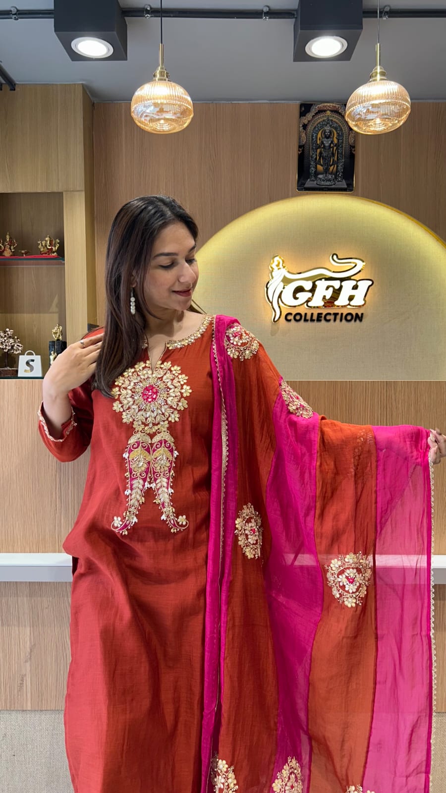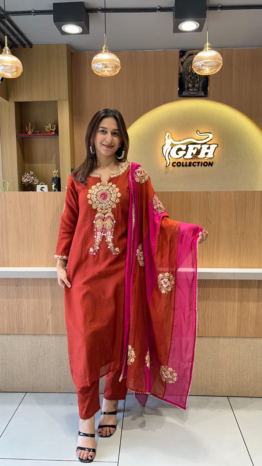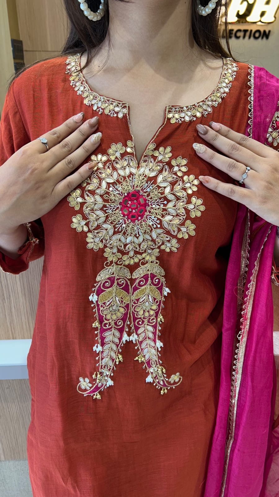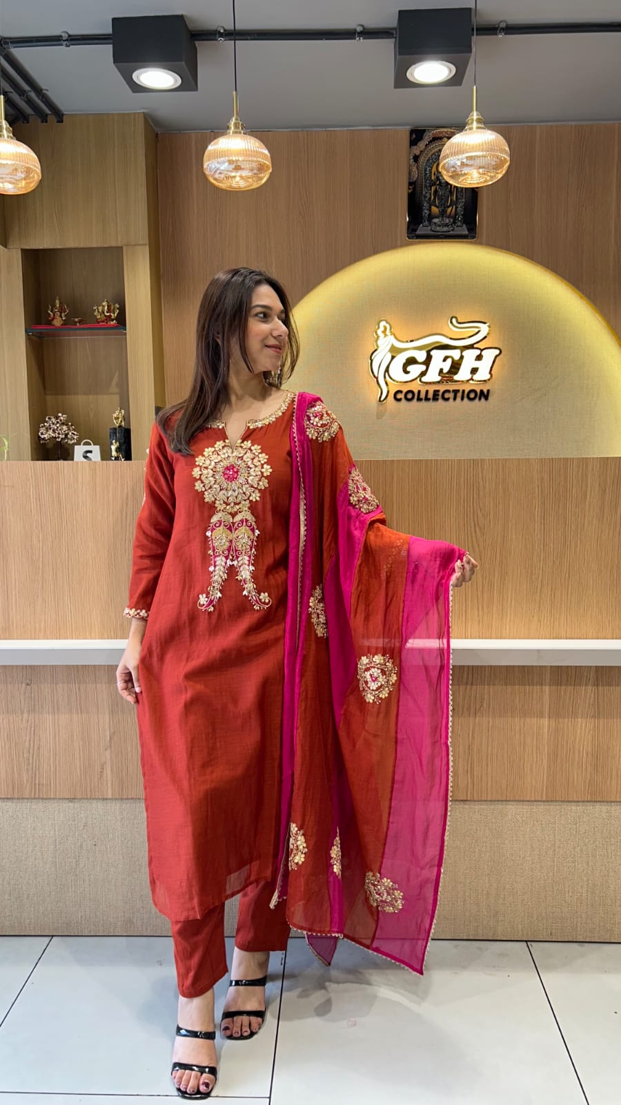 Banaras Mull Chanderi Rust Orange 3pc Set
