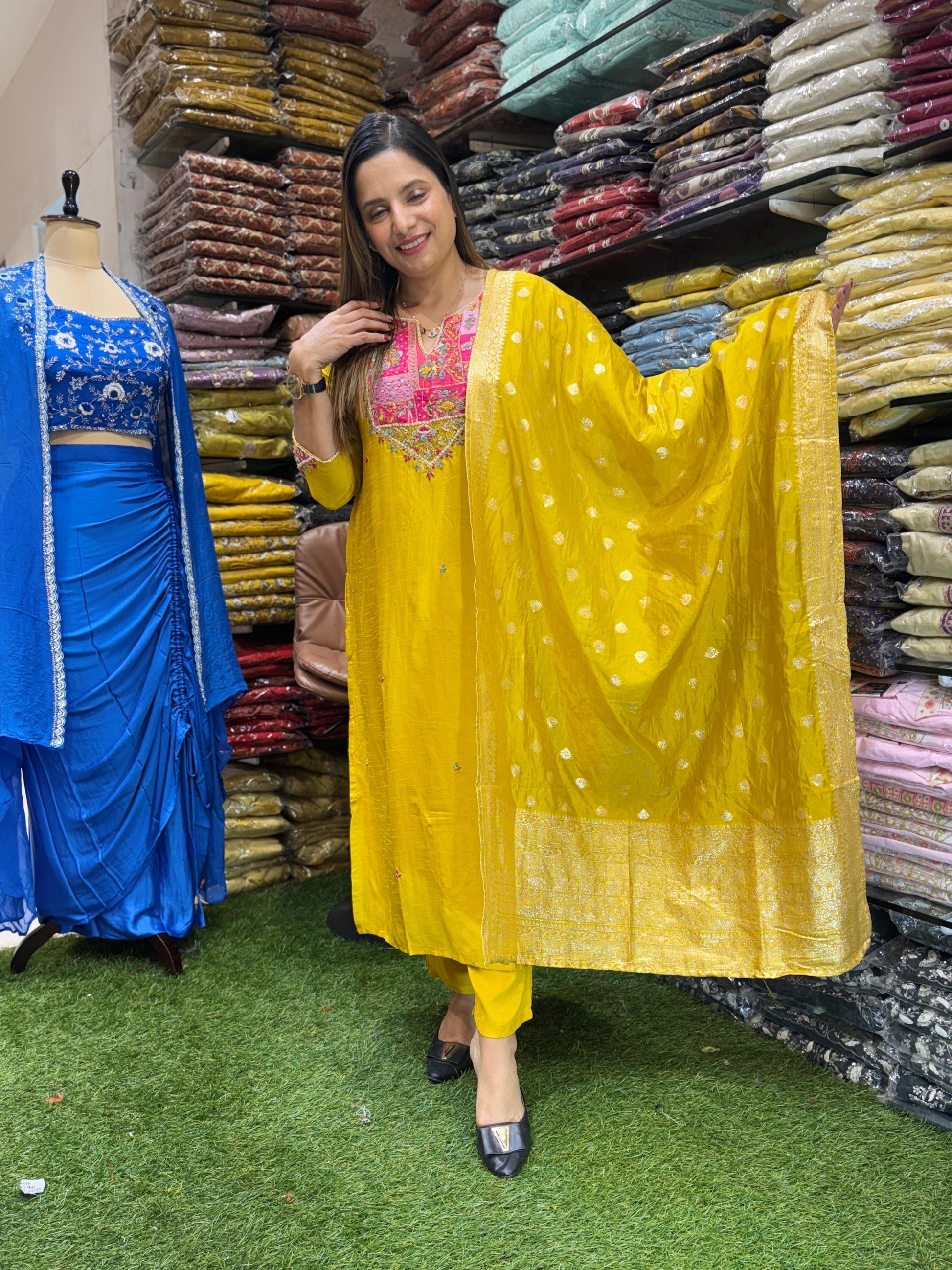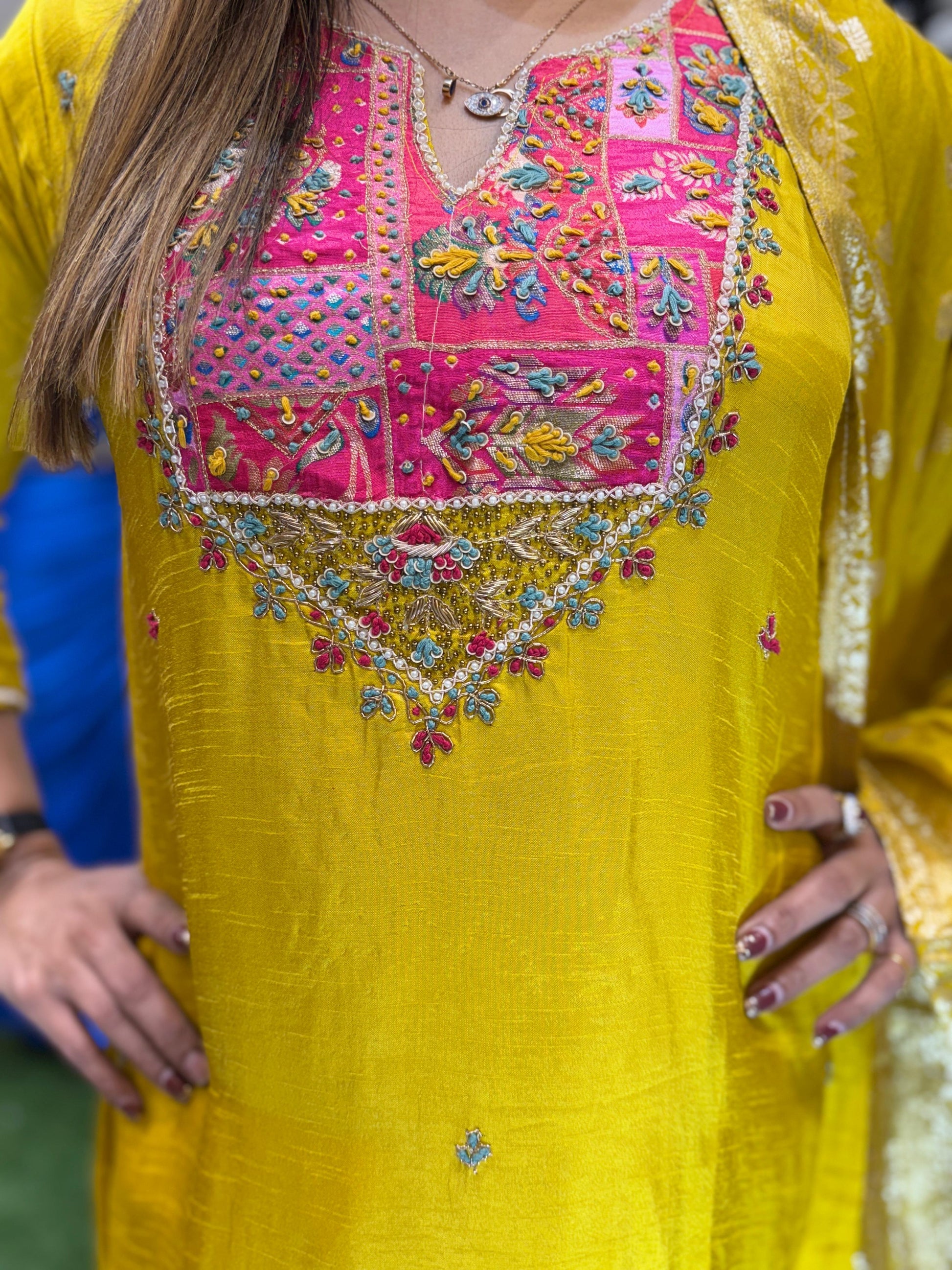 | DISCLAIMER | Culkatta Hand Work Yellow Color |