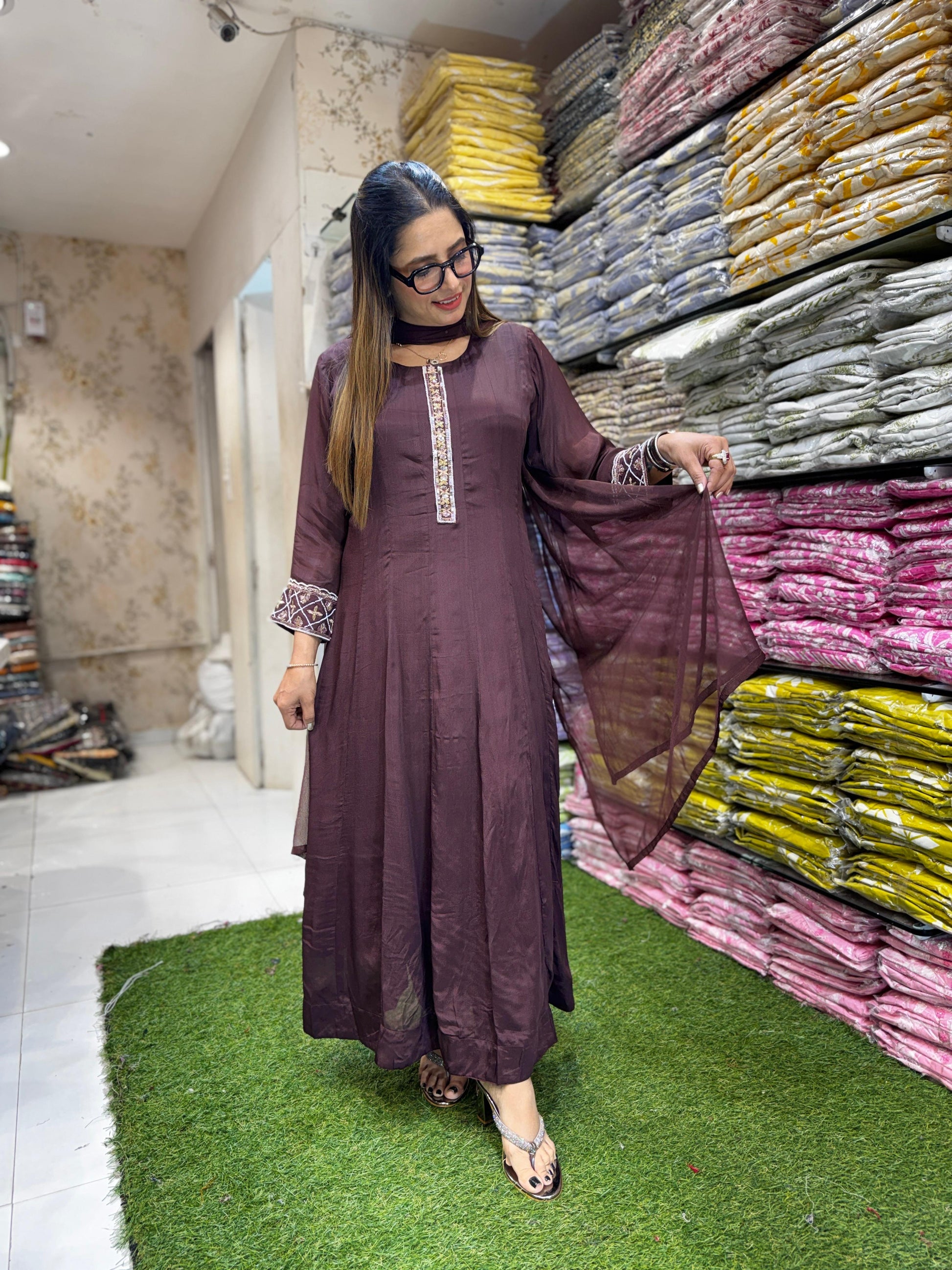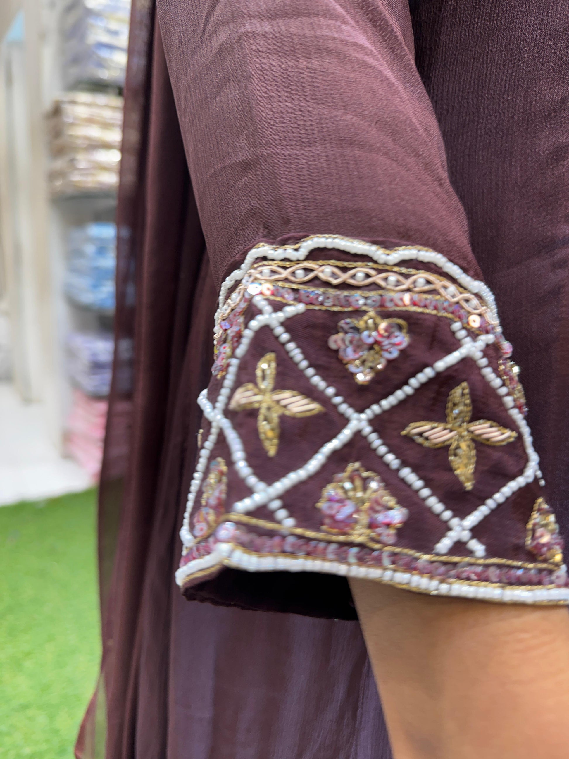 | DETAILS | Culkatta Handwork Brown Color |