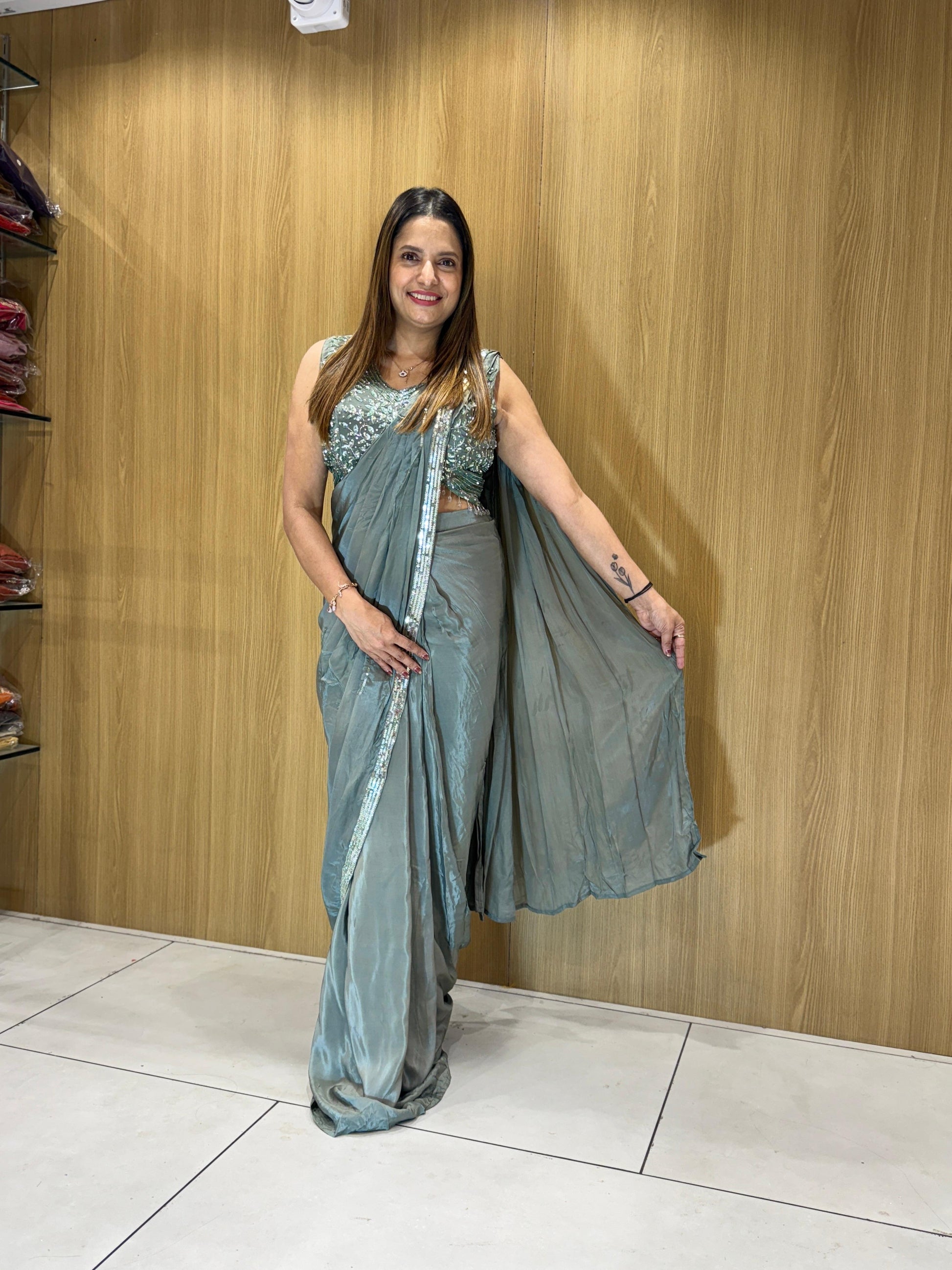 | DISCLAIMER | Culkatta Handwork Pastle Gray Color |