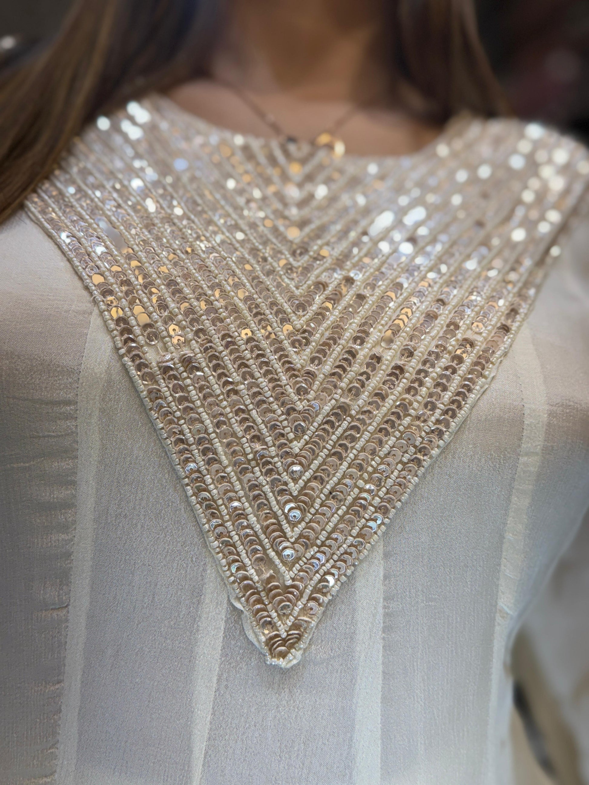 | DETAILS | Heavy Hand Work Pearl White Color |