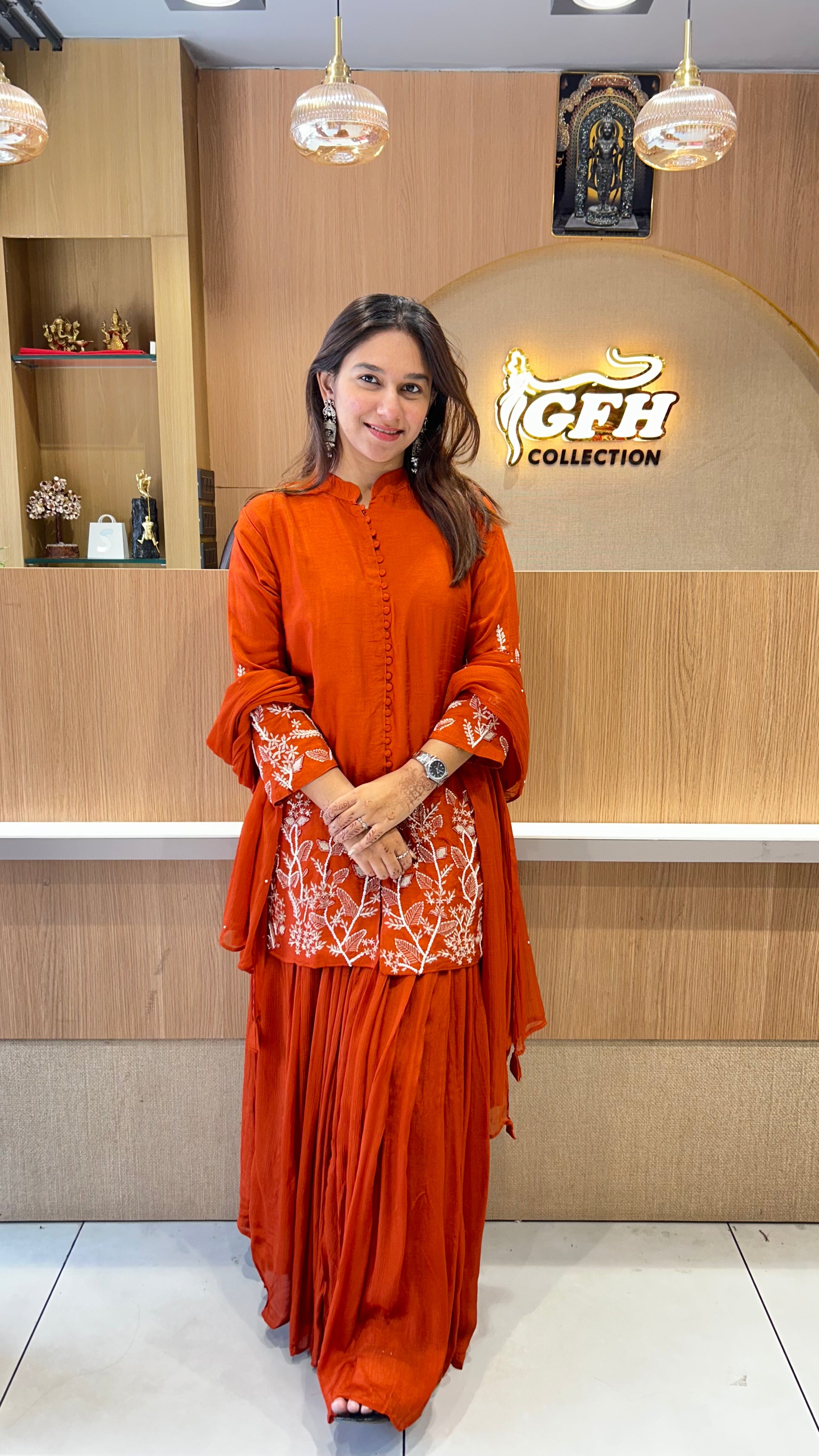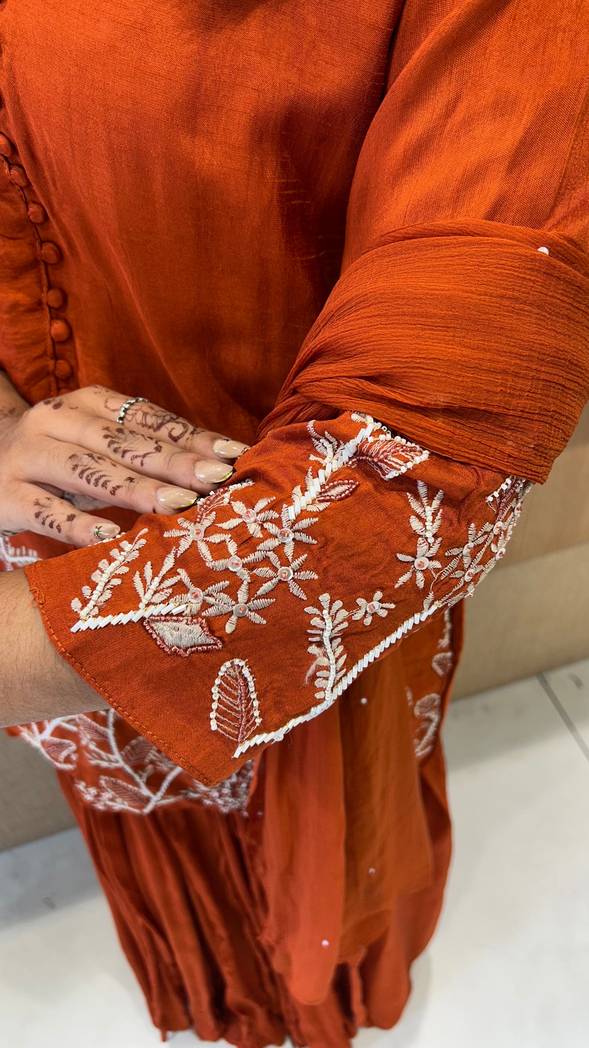 | DETAILS | Culkatta Hand Work Orange Color |