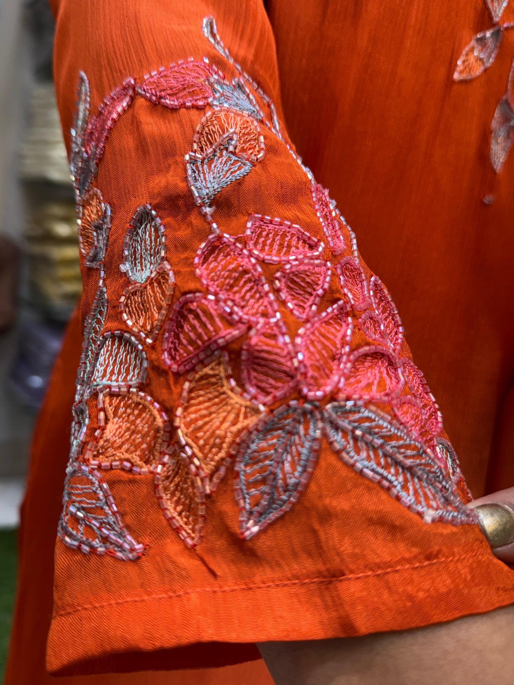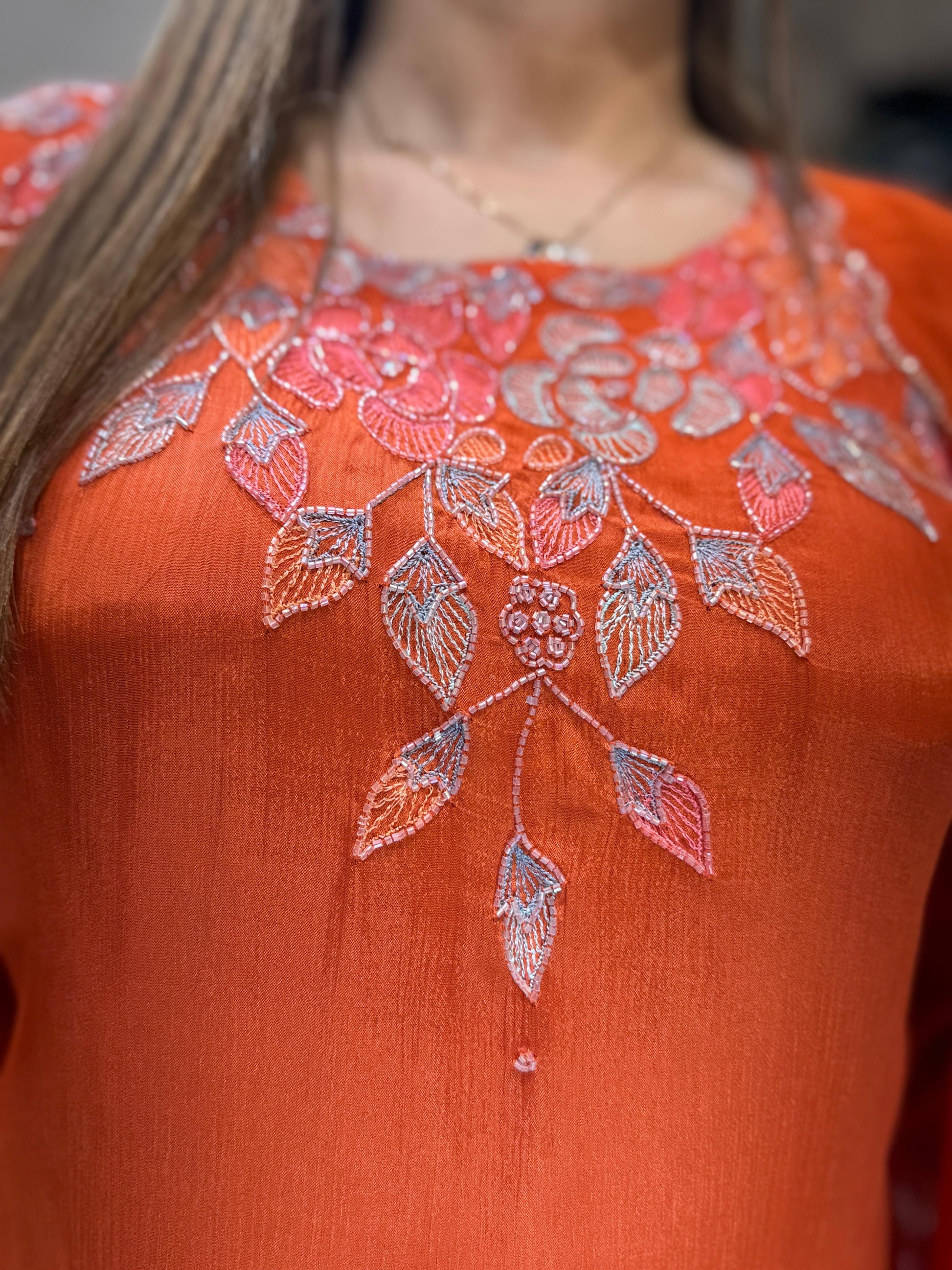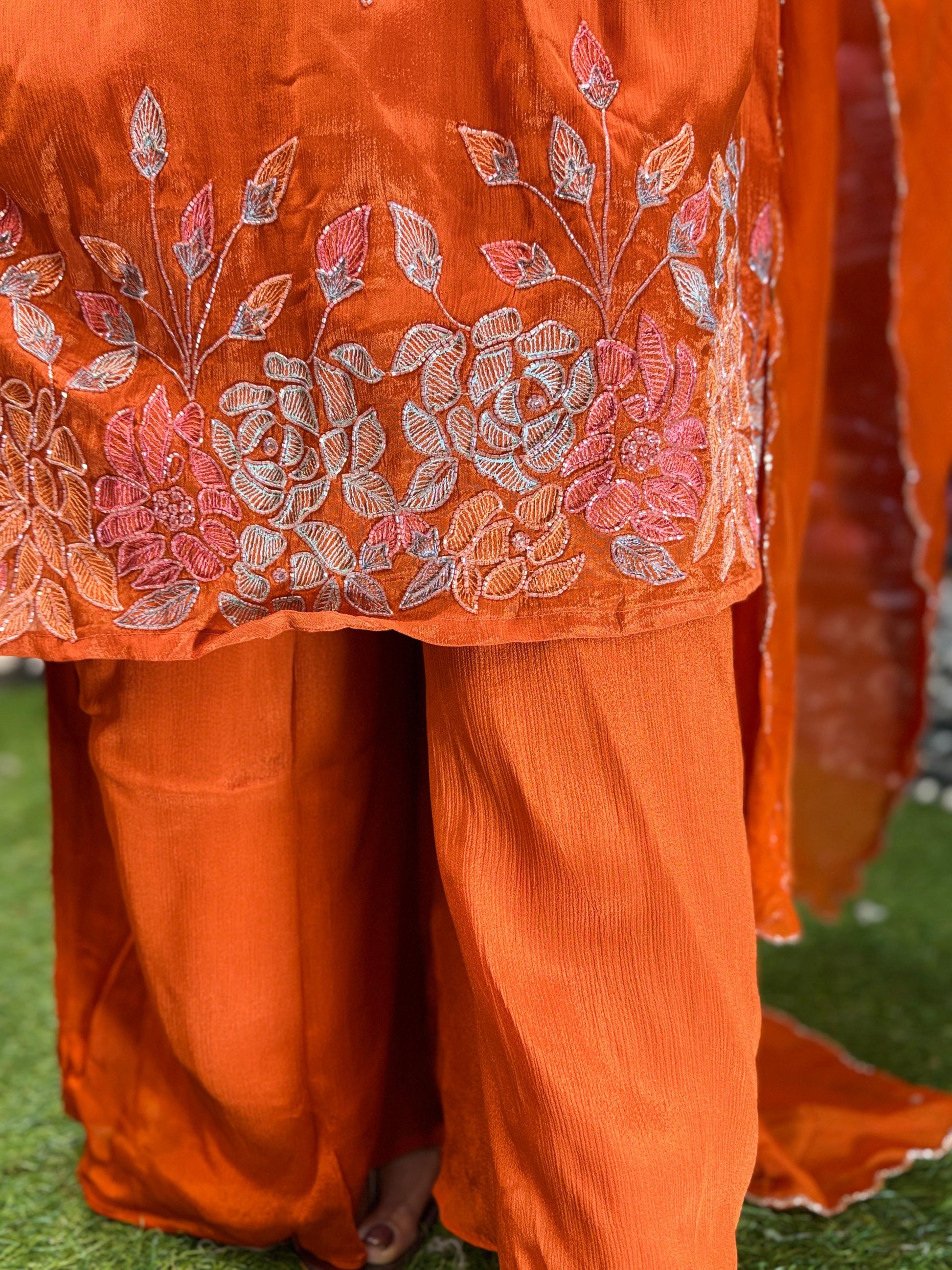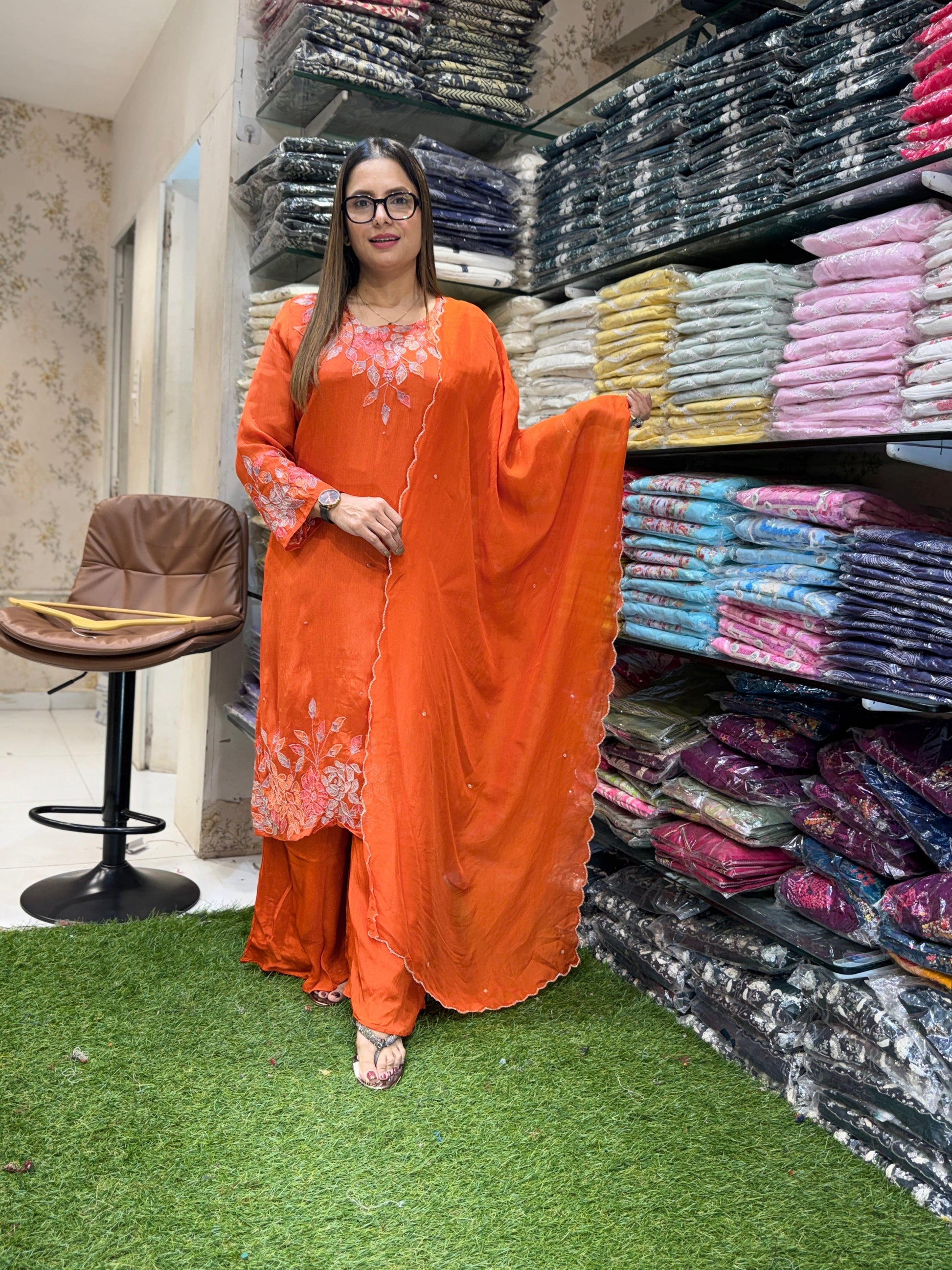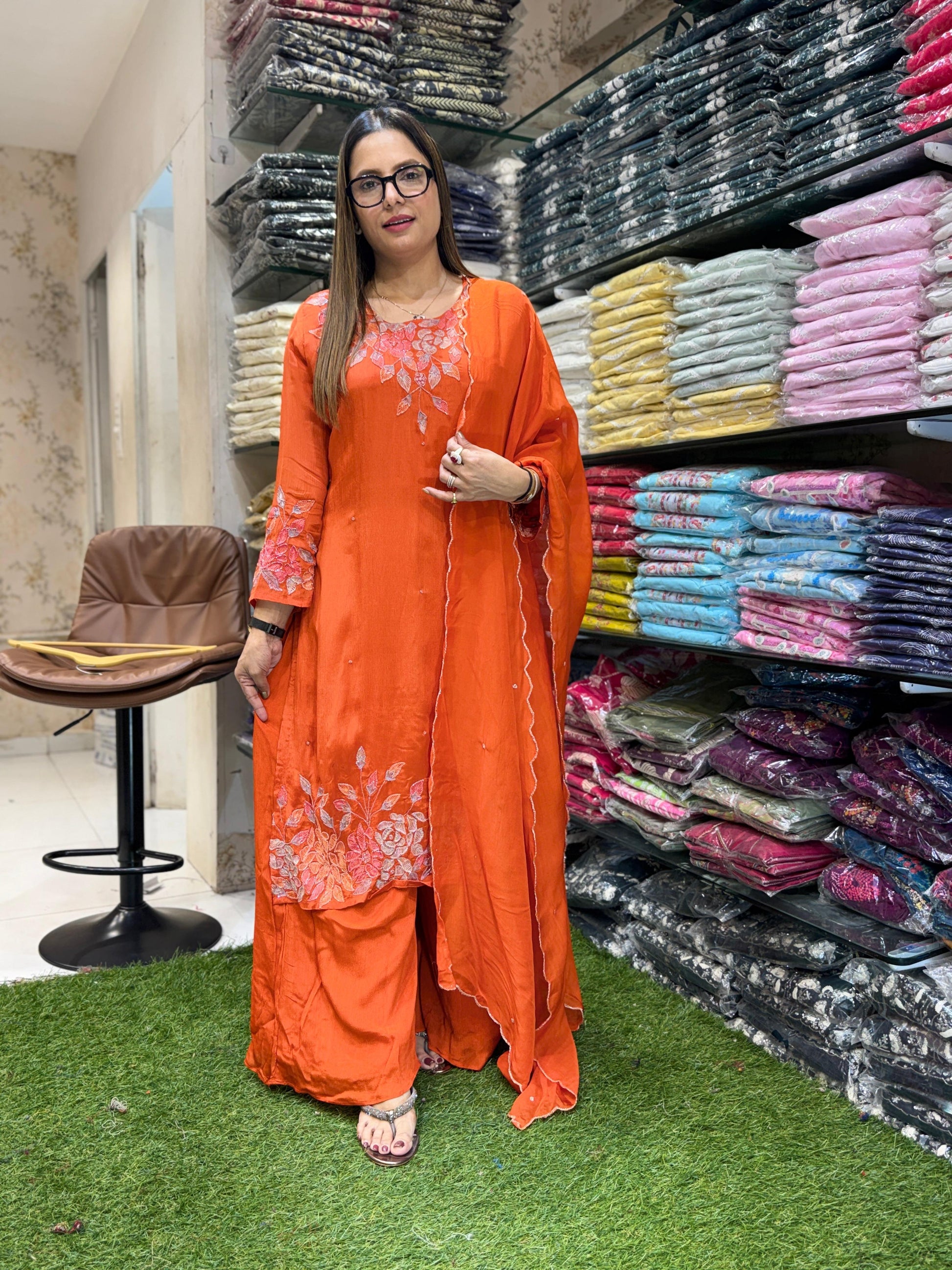 Pure Mull Cotton A- Line 3 pc Suit With Premium Embroidery Work in Pastel or sky blue color