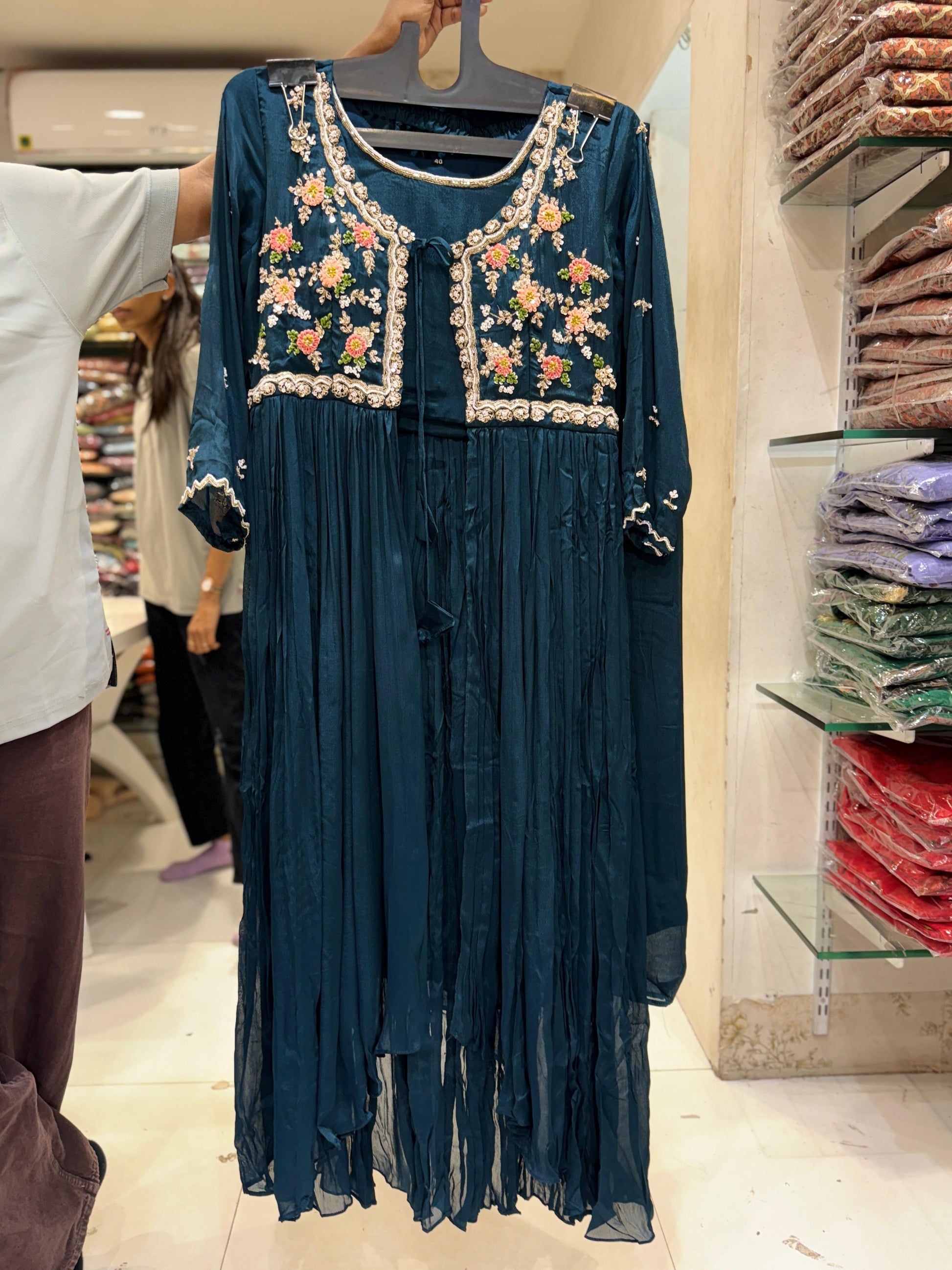 | DISCLAIMER | Culkatta Hand Work Peacock Green Color |