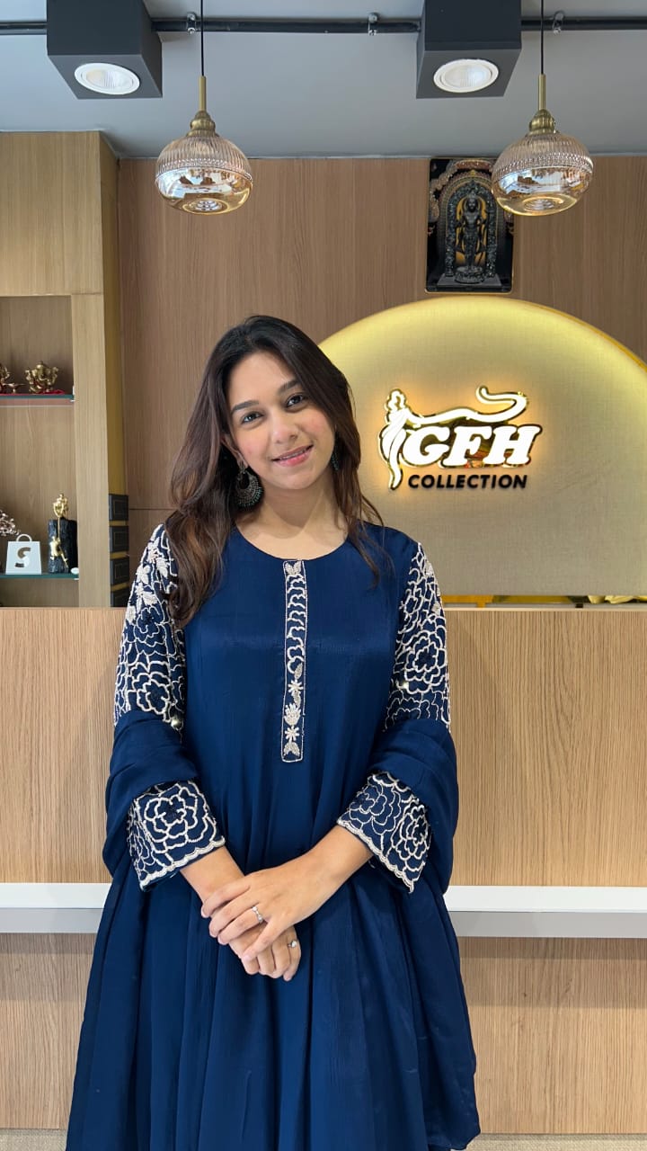 | DETAILS | Culkatta Hand Work Teal Blue Color |