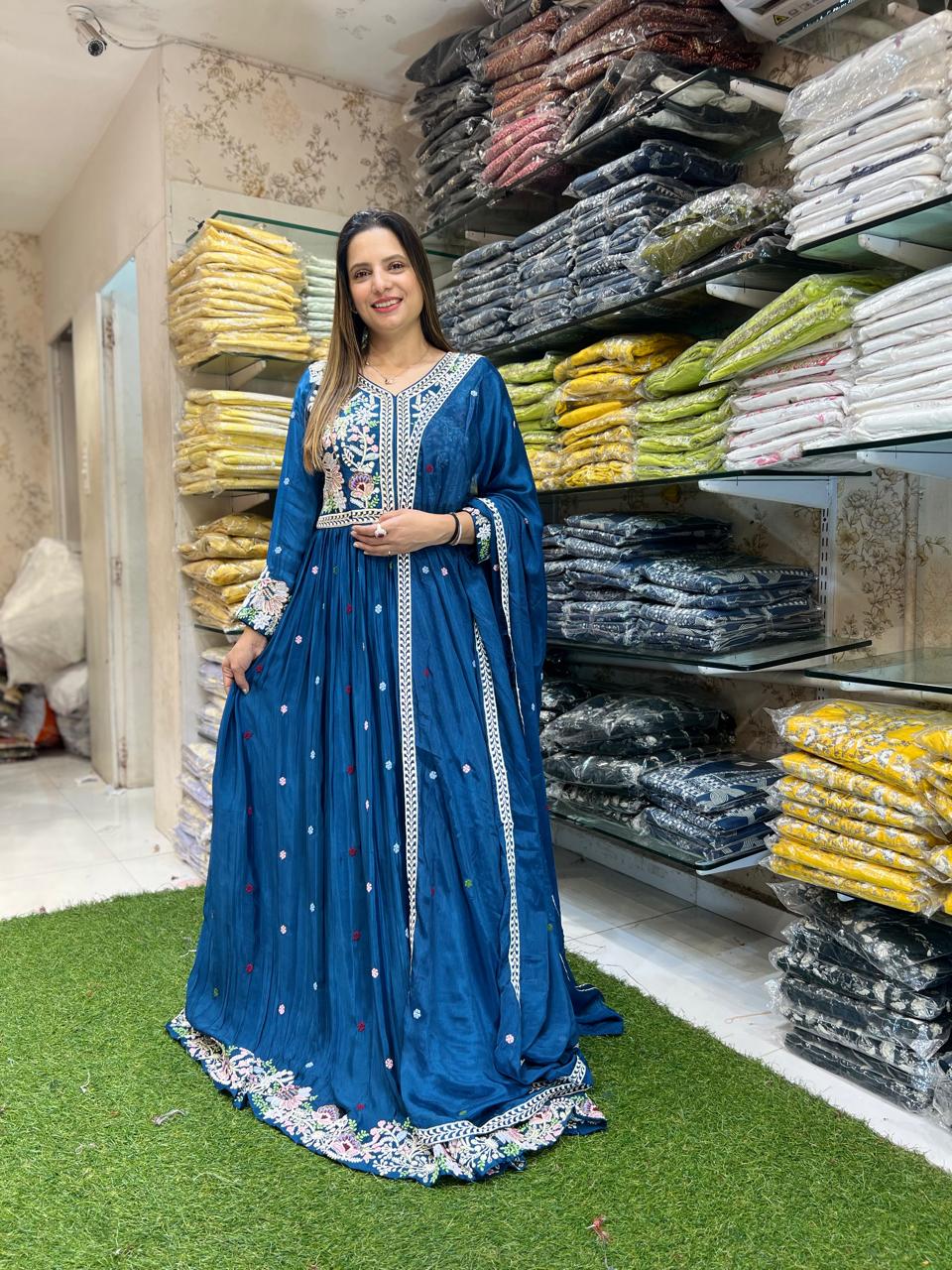 | DETAILS | Culkatta Hand Work Teal Blue Color |