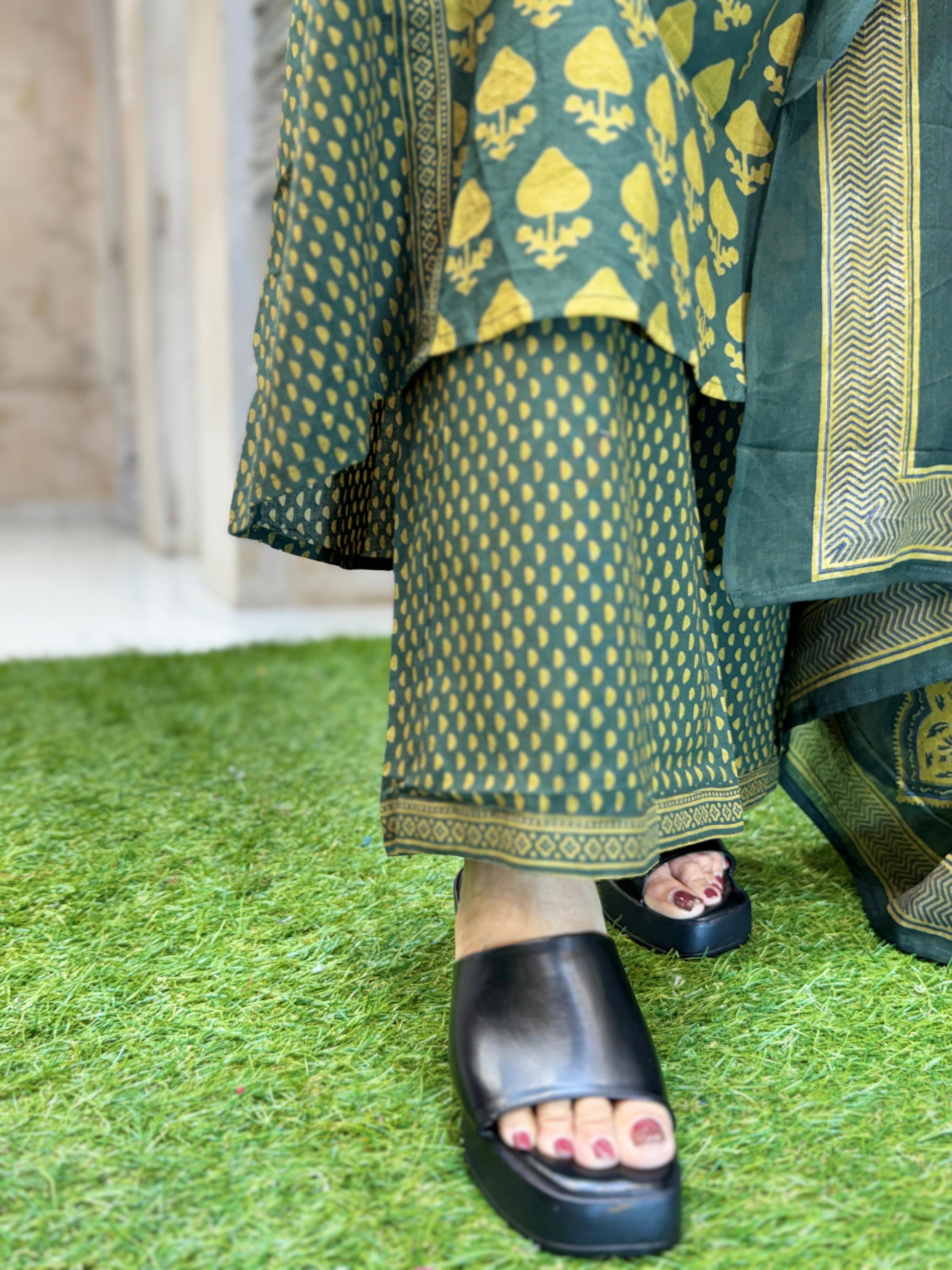 Pure Mull Cotton A- Line 3 pc Suit With Premium Embroidery Work in Pastel or sky blue color
