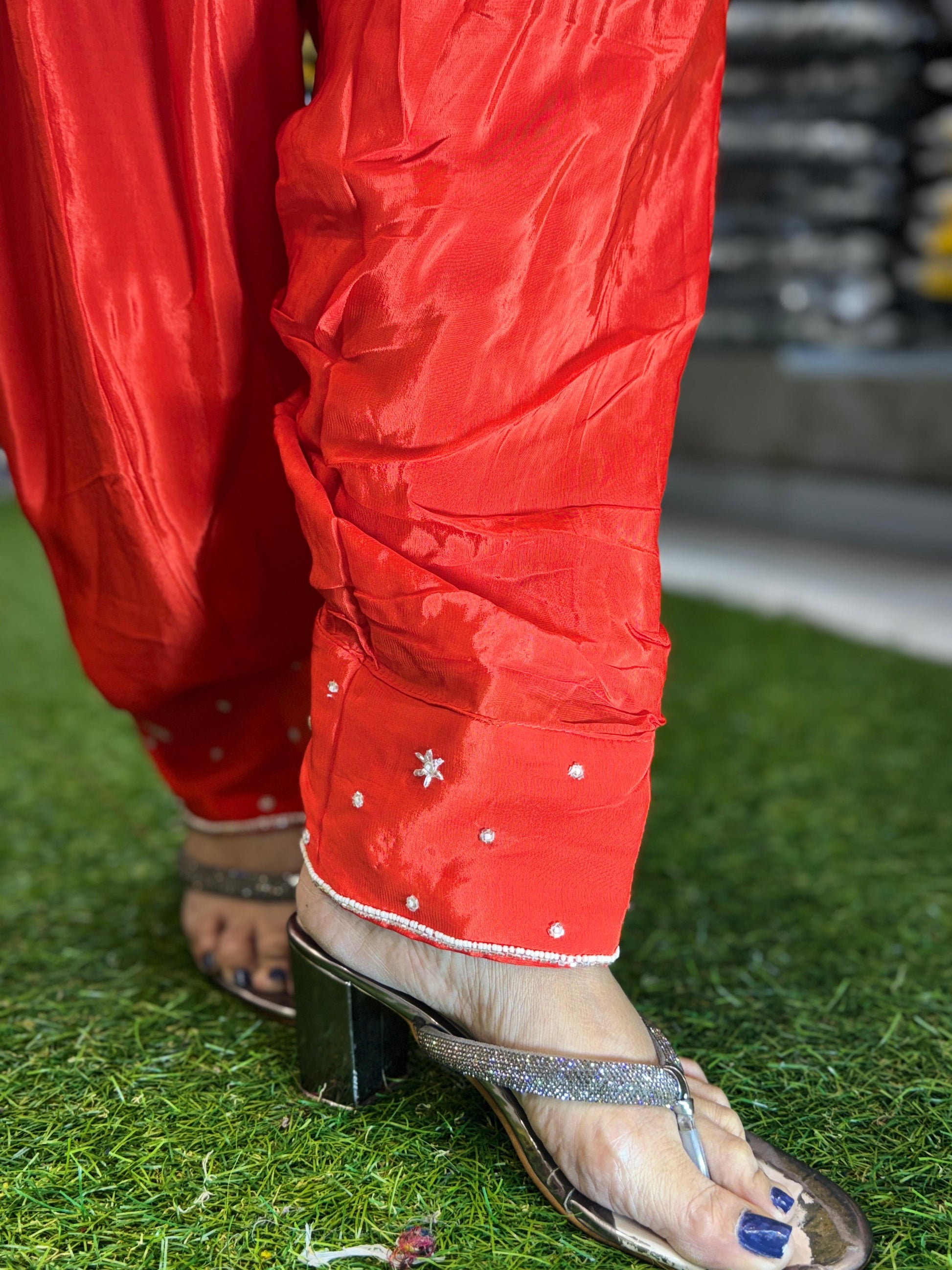 Crep Peach And Orange Farsi Salwar 3pc Set