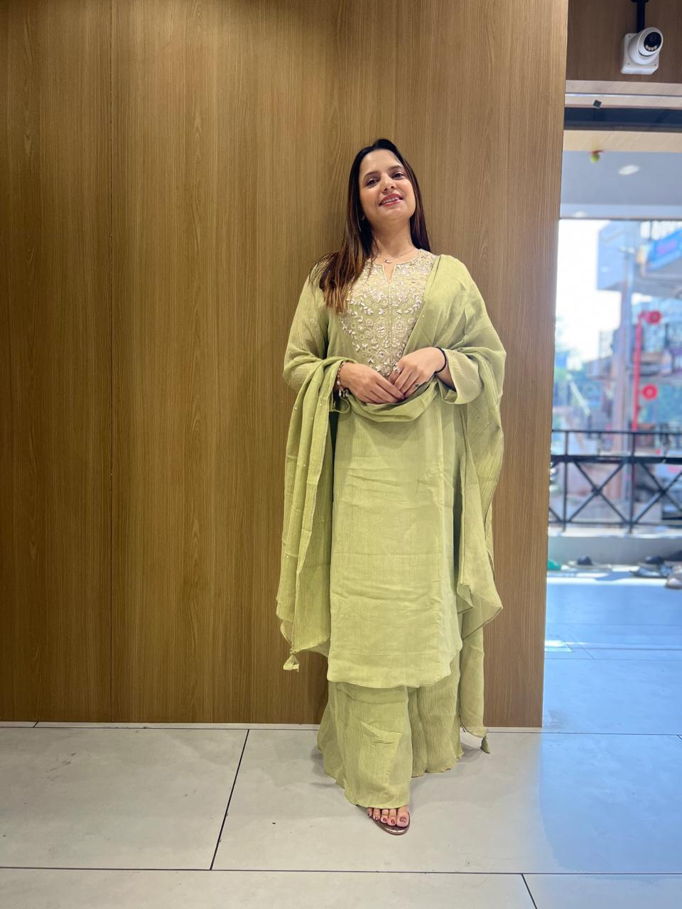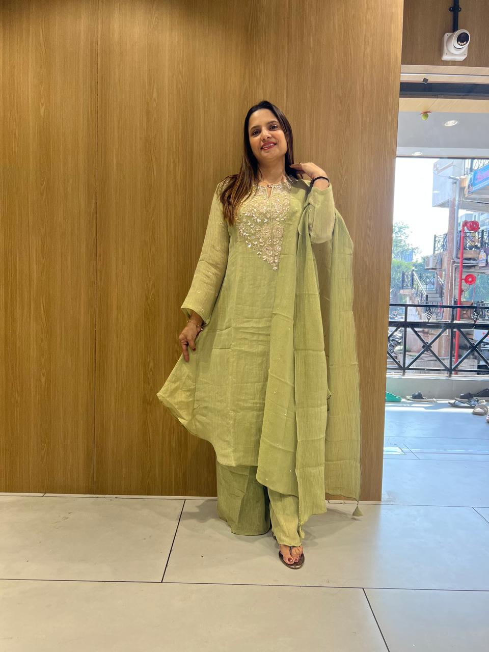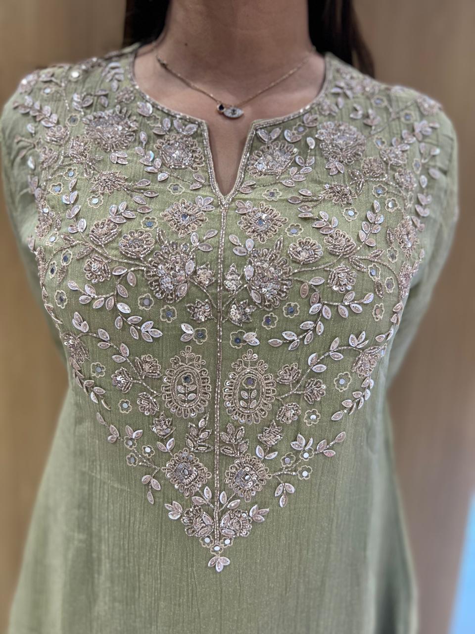 | DISCLAIMER | Culkatta Handwork Pista Green Color |