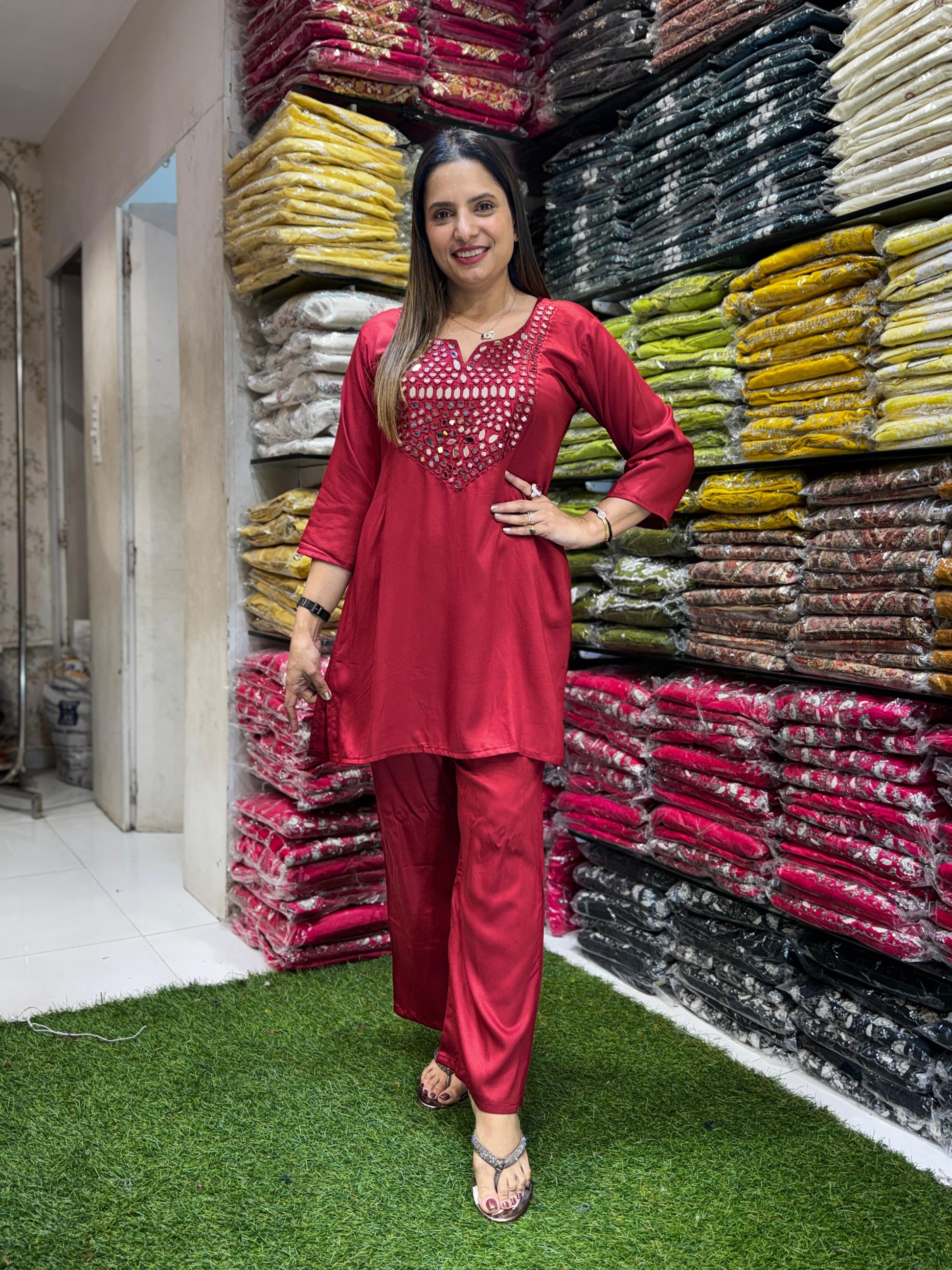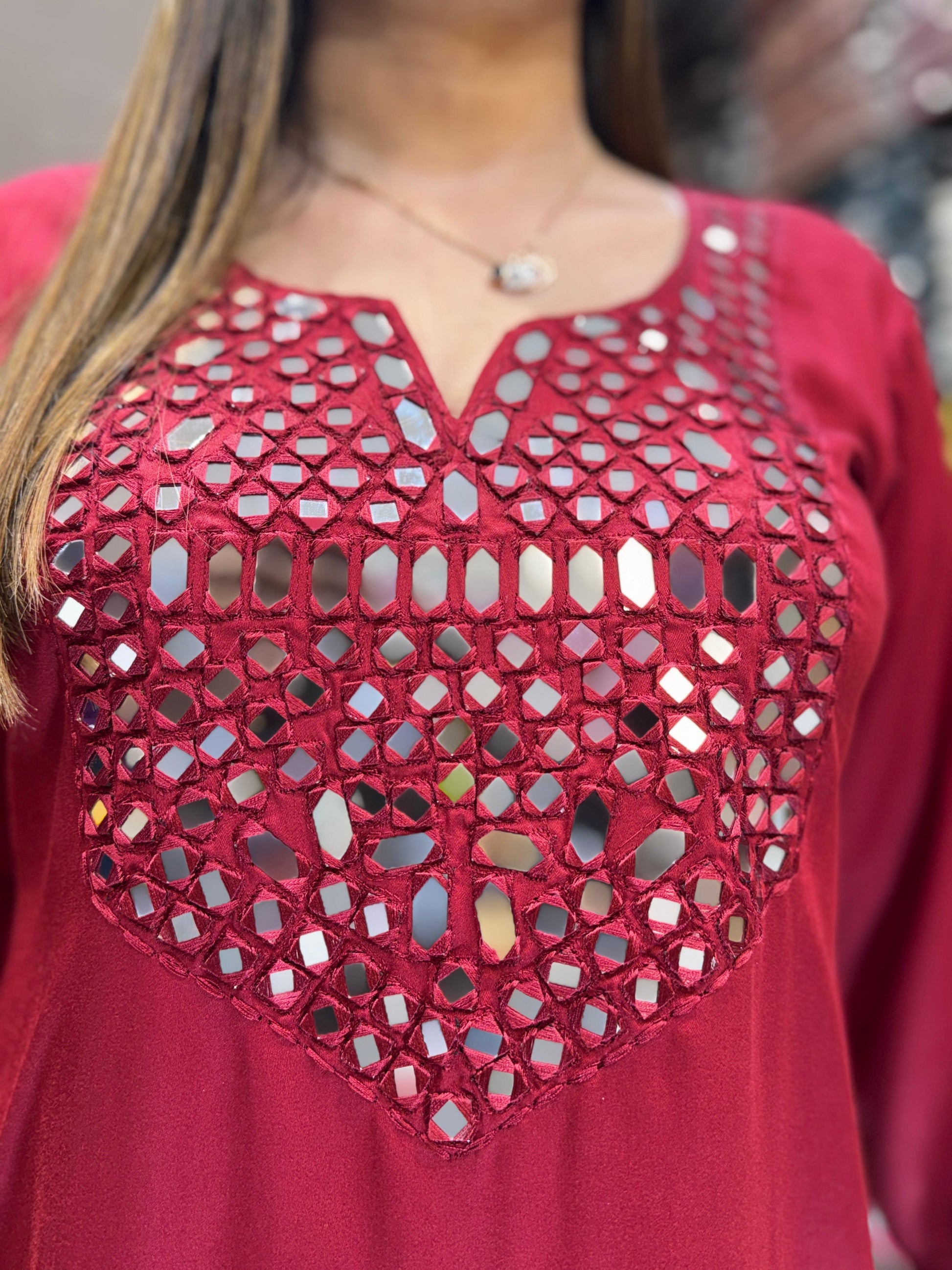 | DETAILS | Mirror Work Maroon Color |