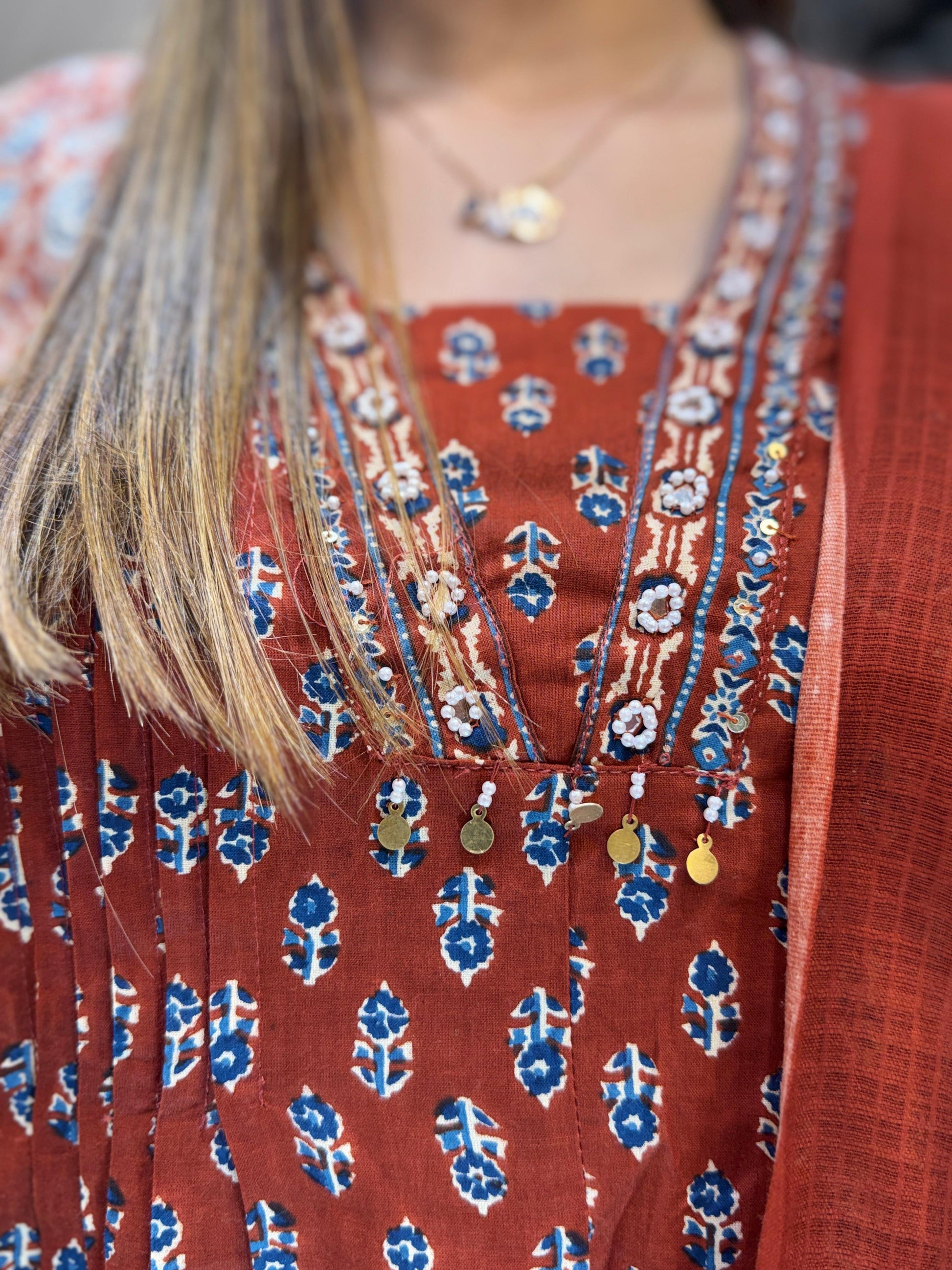 Jaipuri Cotton Anarkali Rust 3pc Set