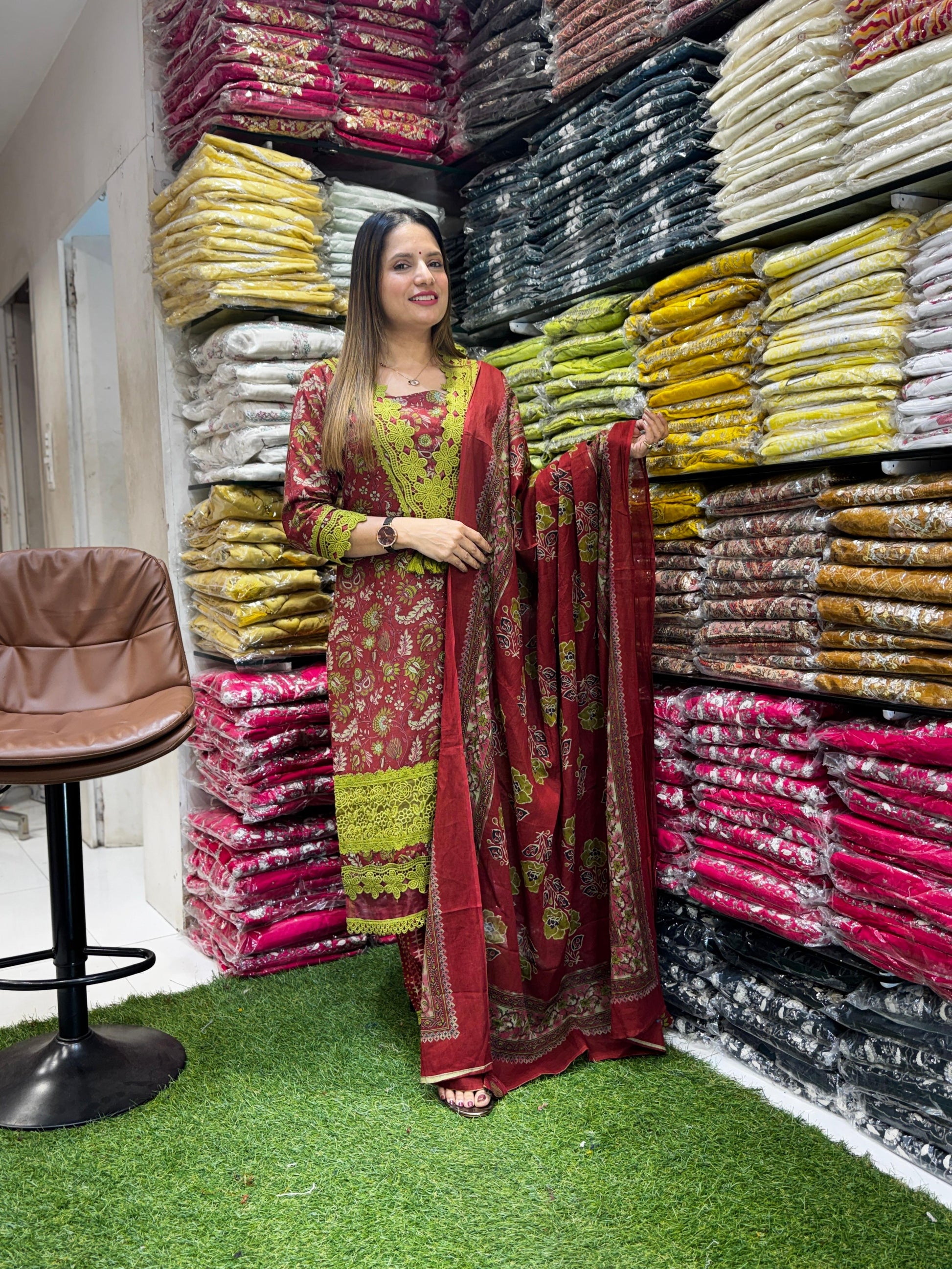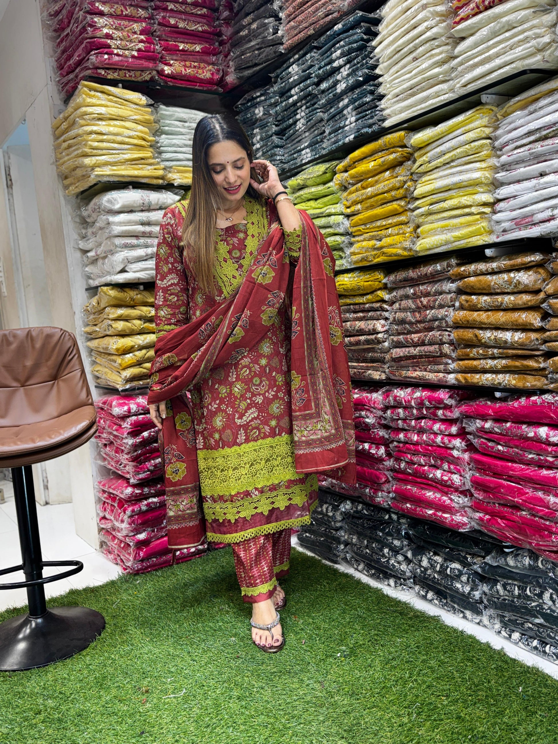 Jaipuri Cotton Pakistani 3pc Set Maroon Color