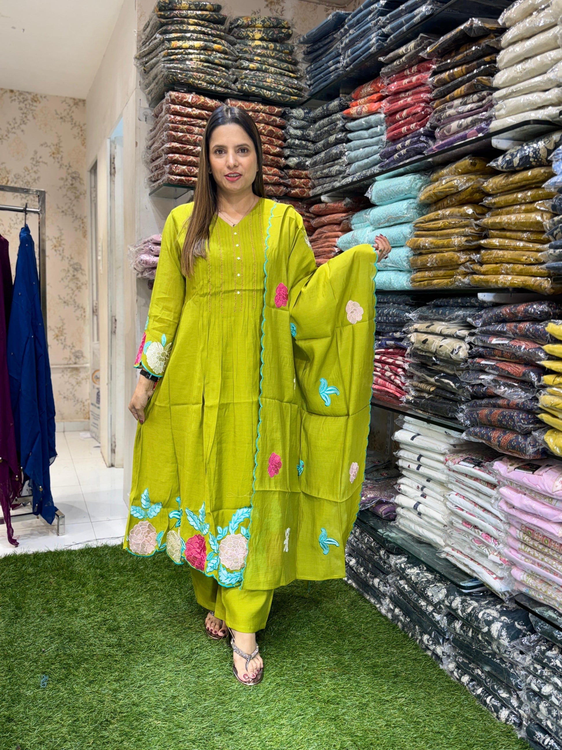 Mull Chanderi Green 3pc Set