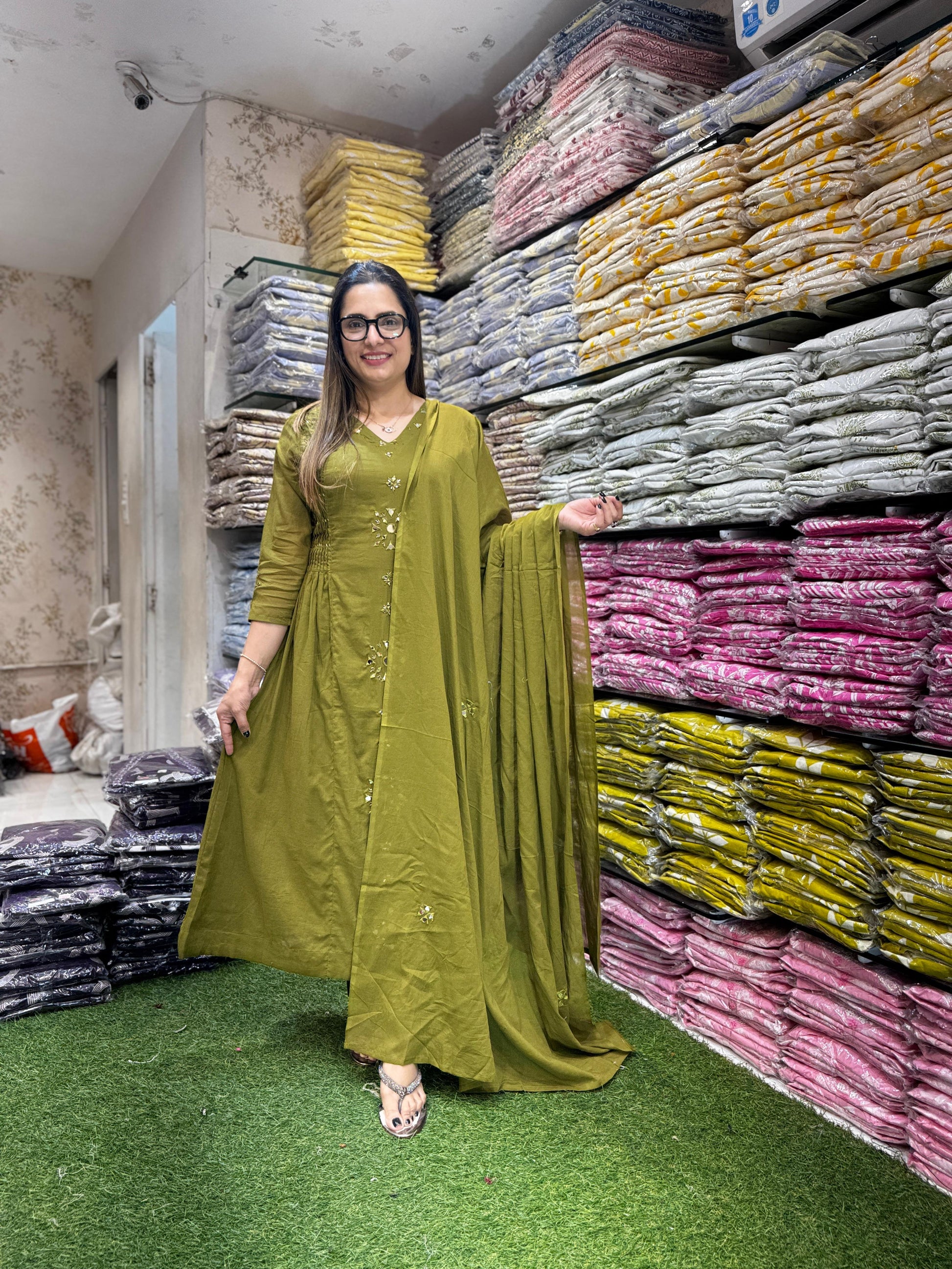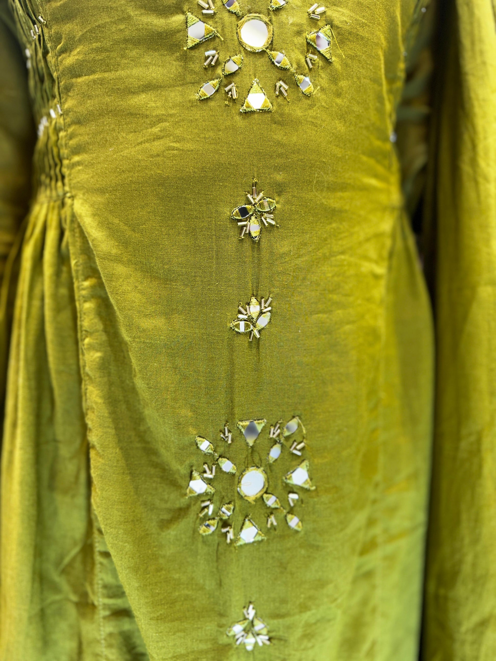 | DETAILS | Real Mirror Work Mahendi Green Color |