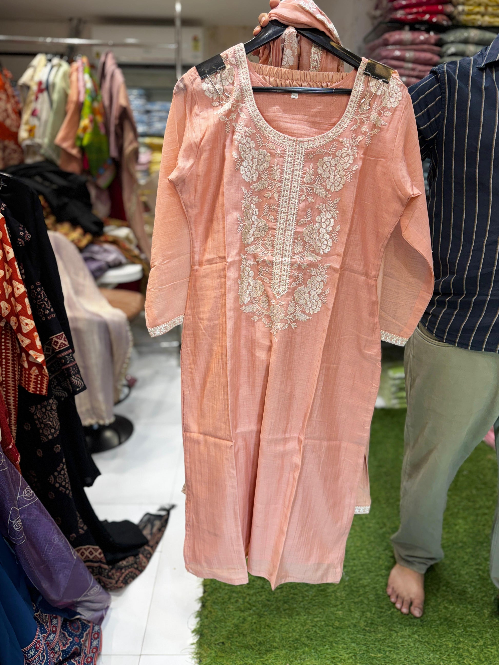Pure Banaras Mull Chanderi Peach 3pc Set