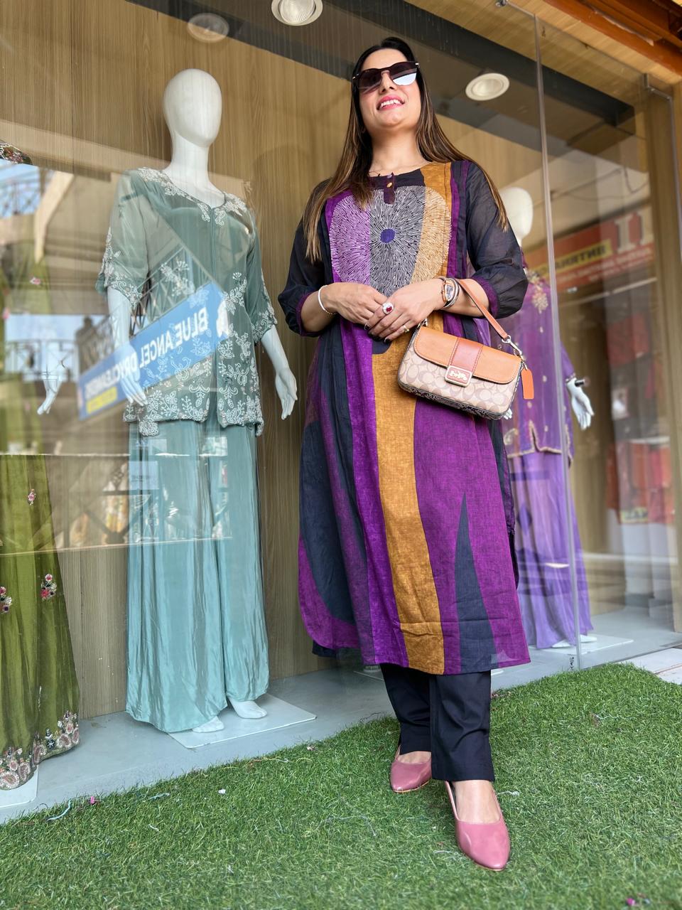 Jaipuri Cotton Blue Anarkali 3pc Set