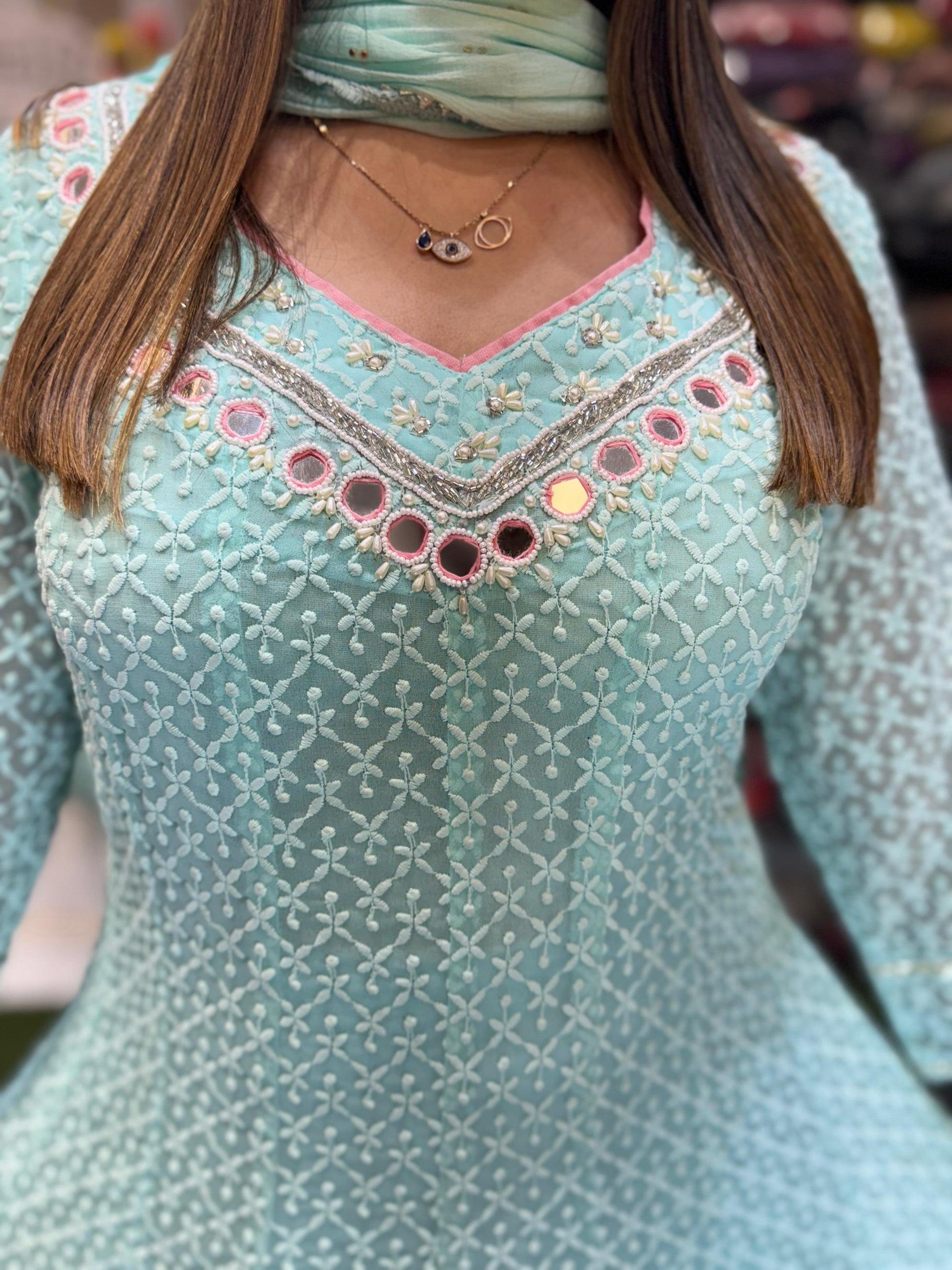 DISCLAIMER : Chikankaari Pearl Work Sky Blue Color