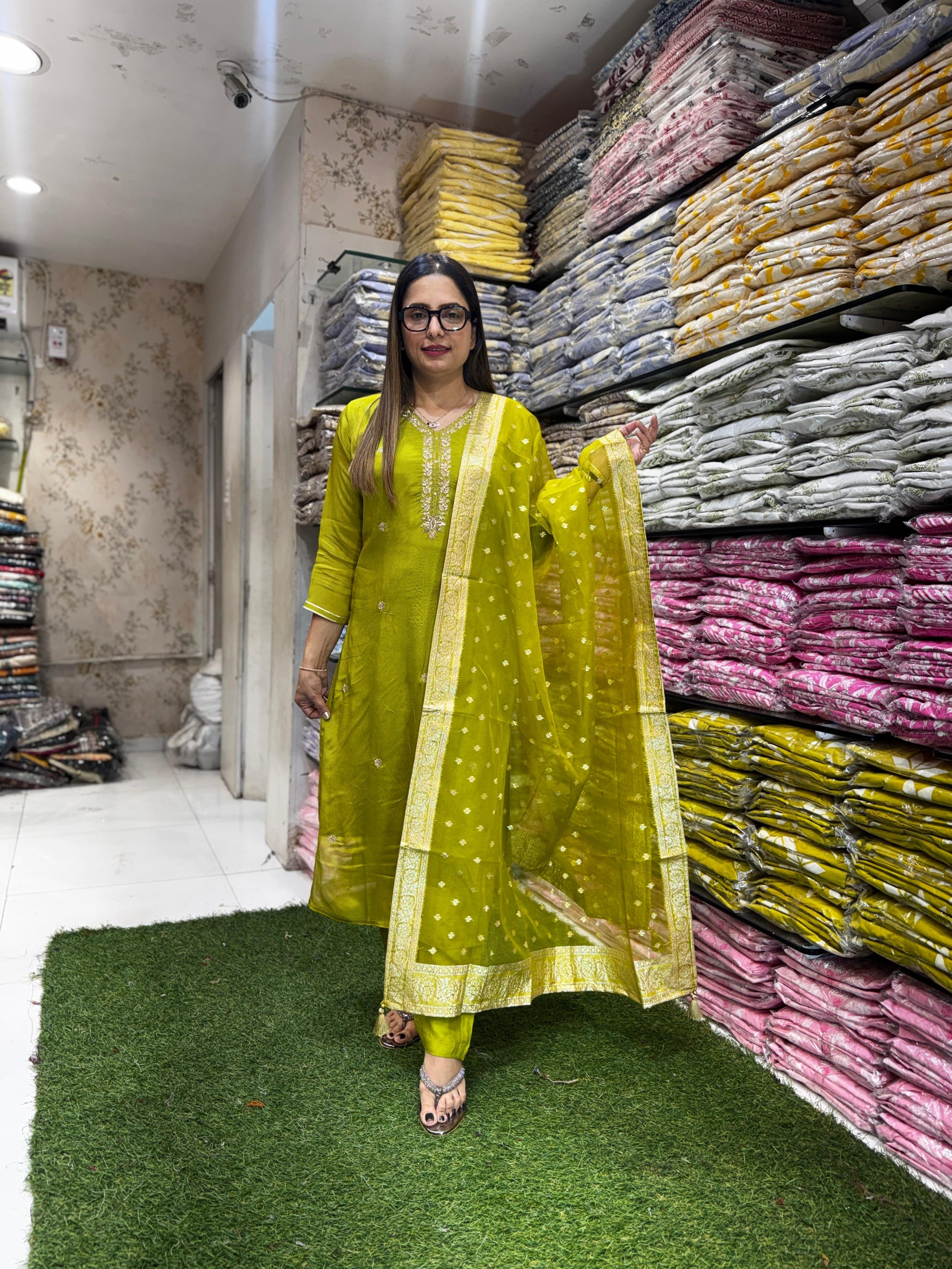 Jaipuri Cotton Blue Anarkali 3pc Set