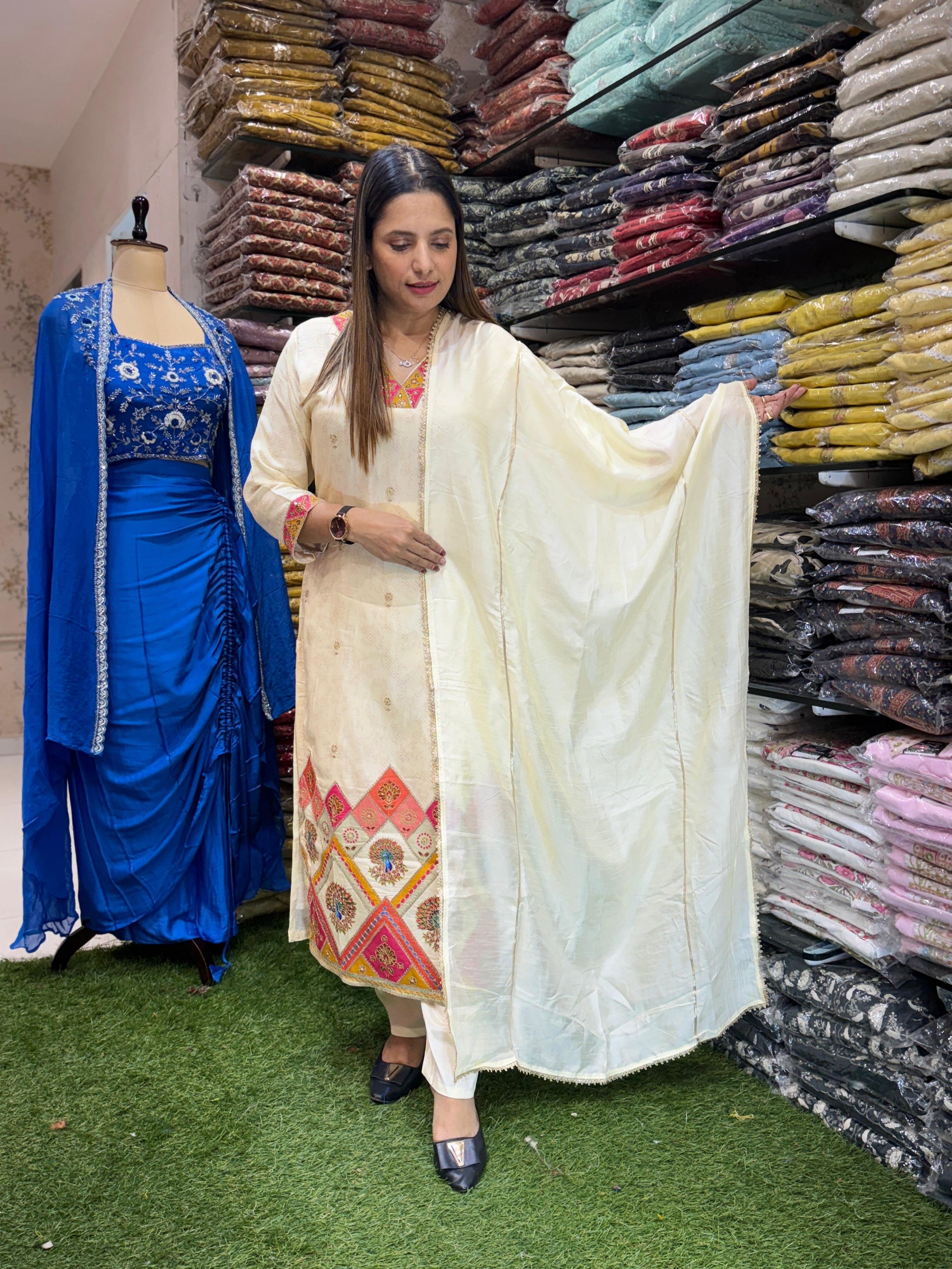 Russian Dola Silk Ivory 3pc Set