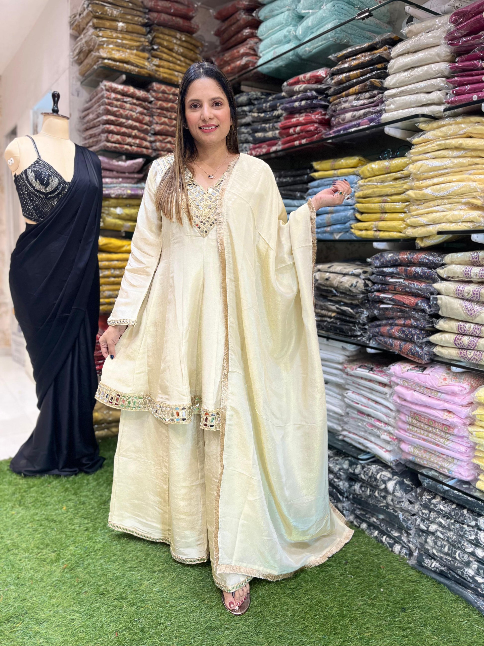| DISCLAIMER | Mirror Hand Work Ivory Color |