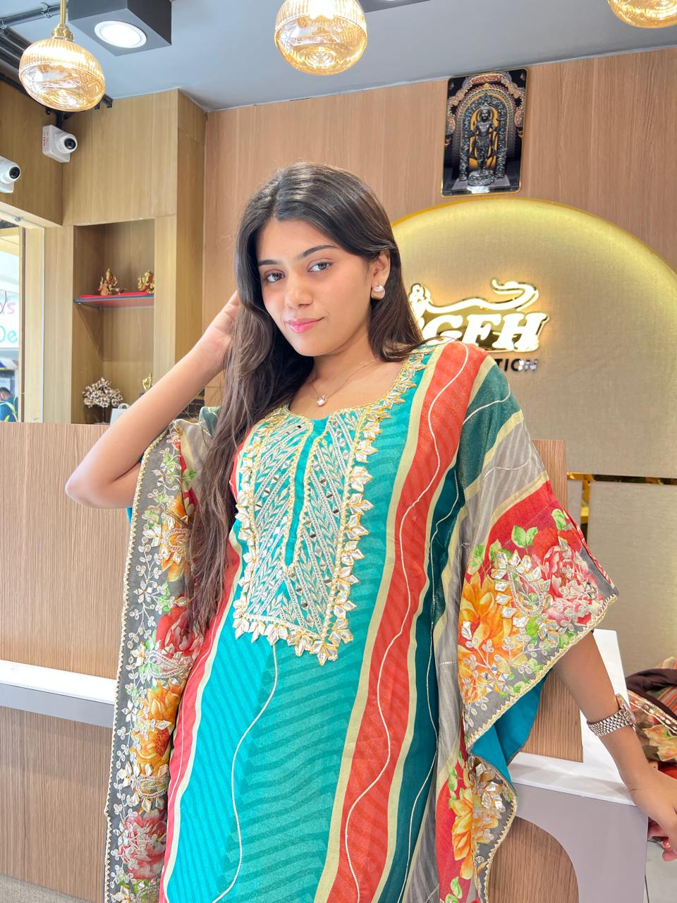 Simmer Tissue Kaftan Firozi 2pc Set