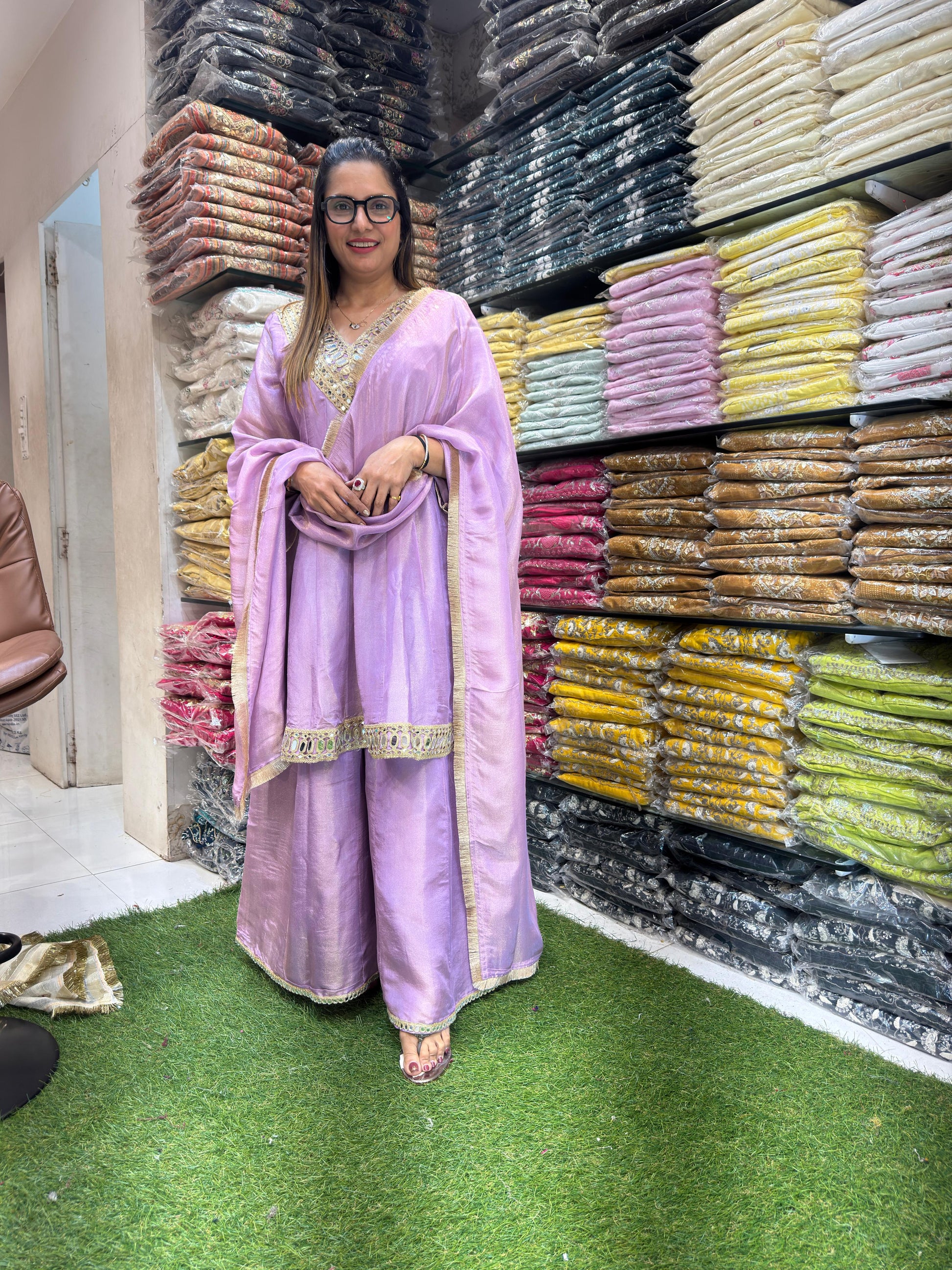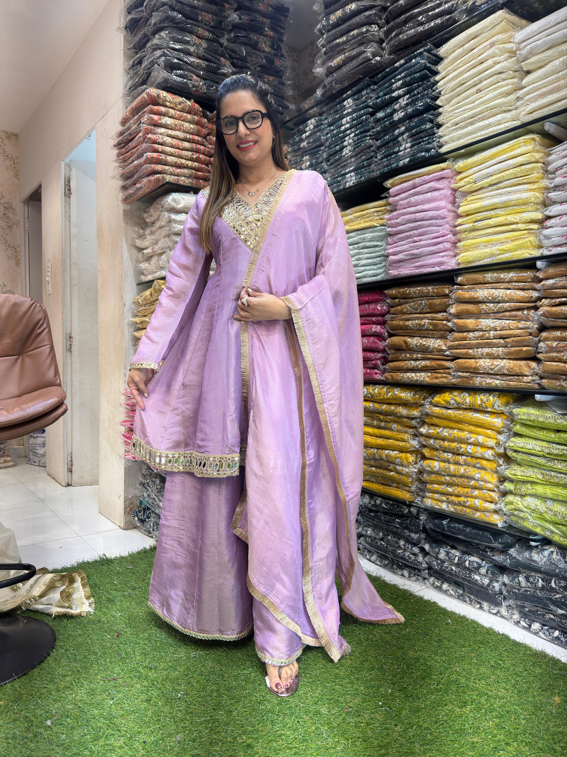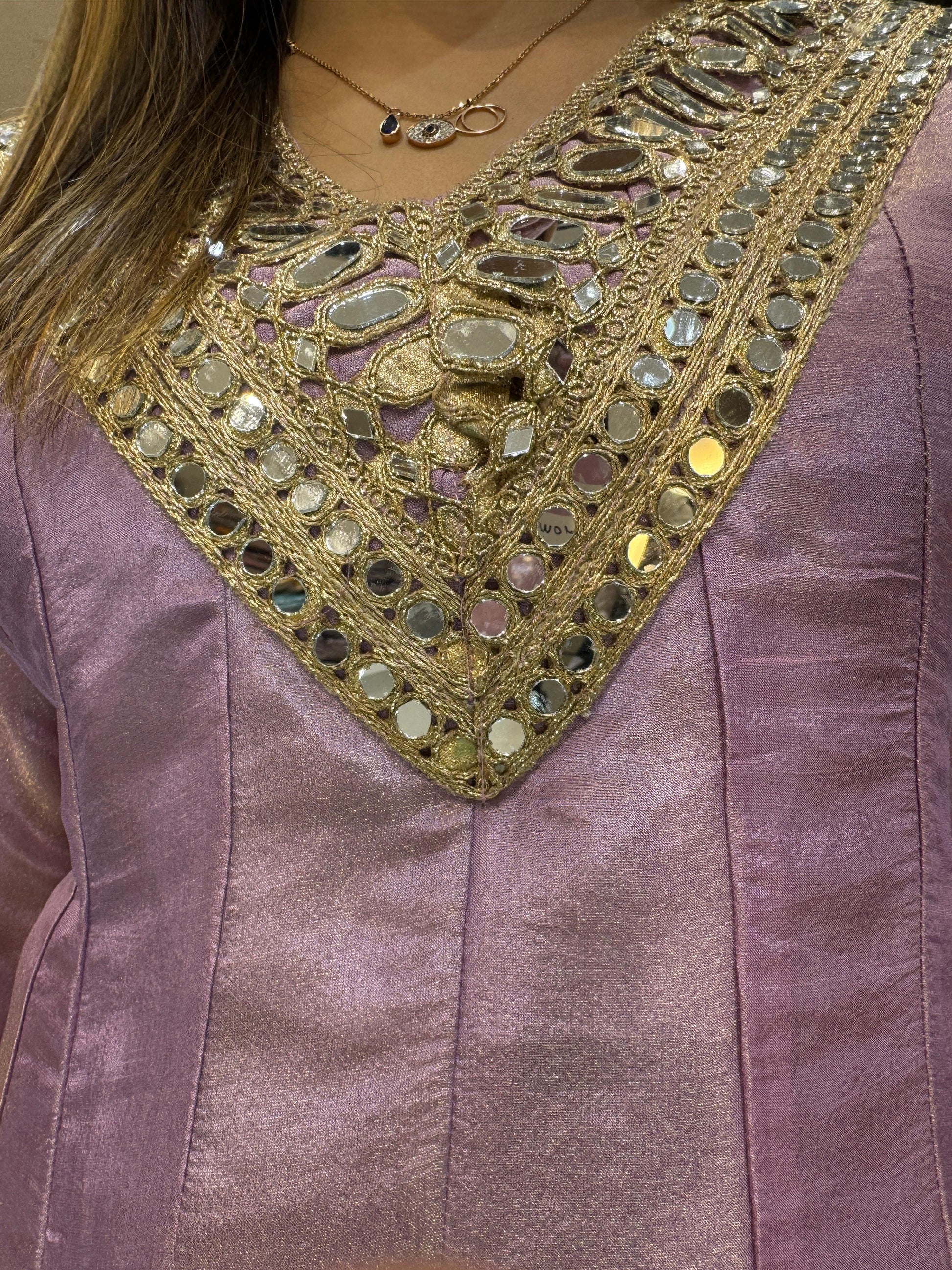 | DETAILS | Mirror Hand Work Purple Color |