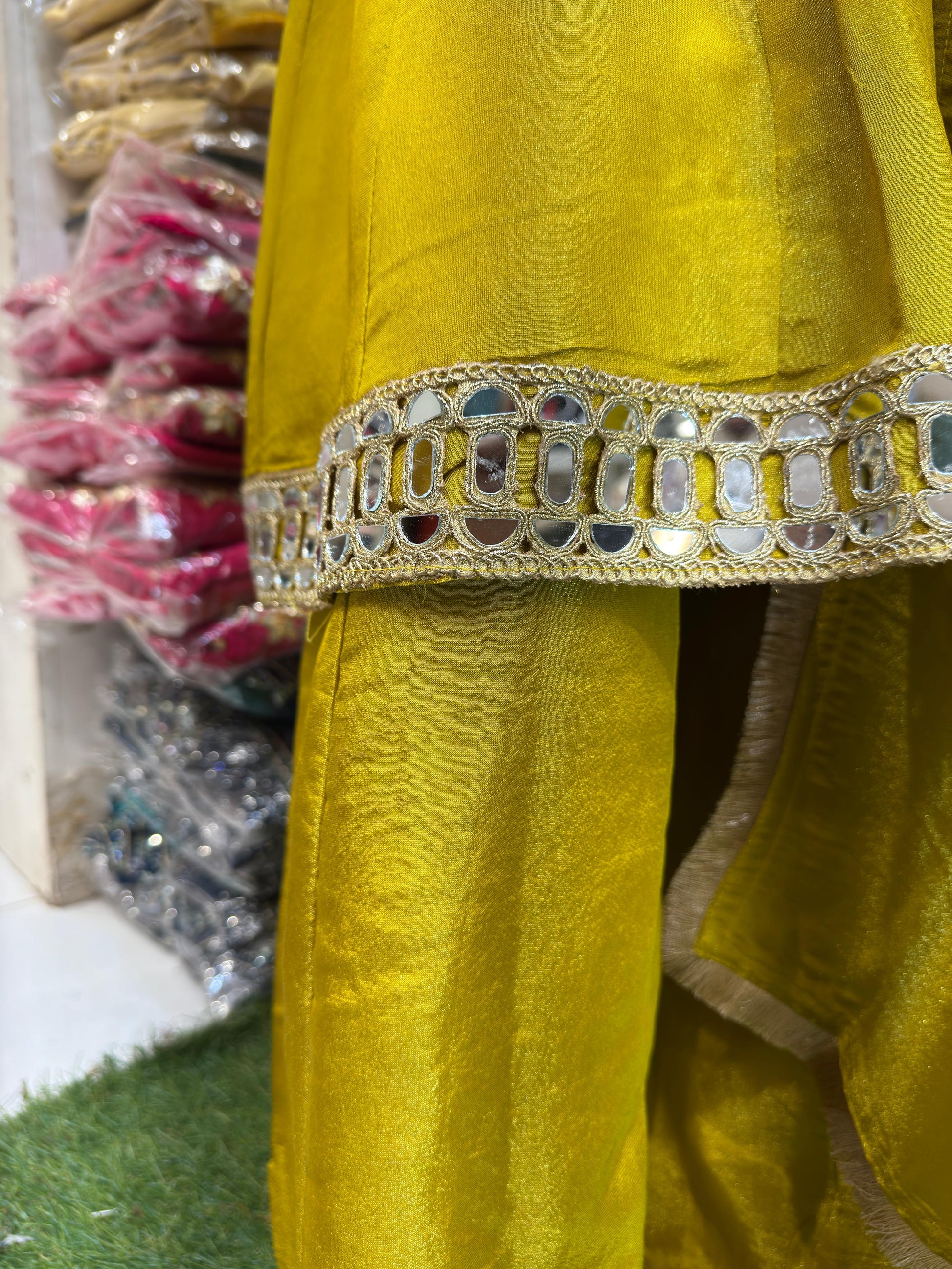 | DETAILS | Mirror Hand Work Mustard Yellow Color |